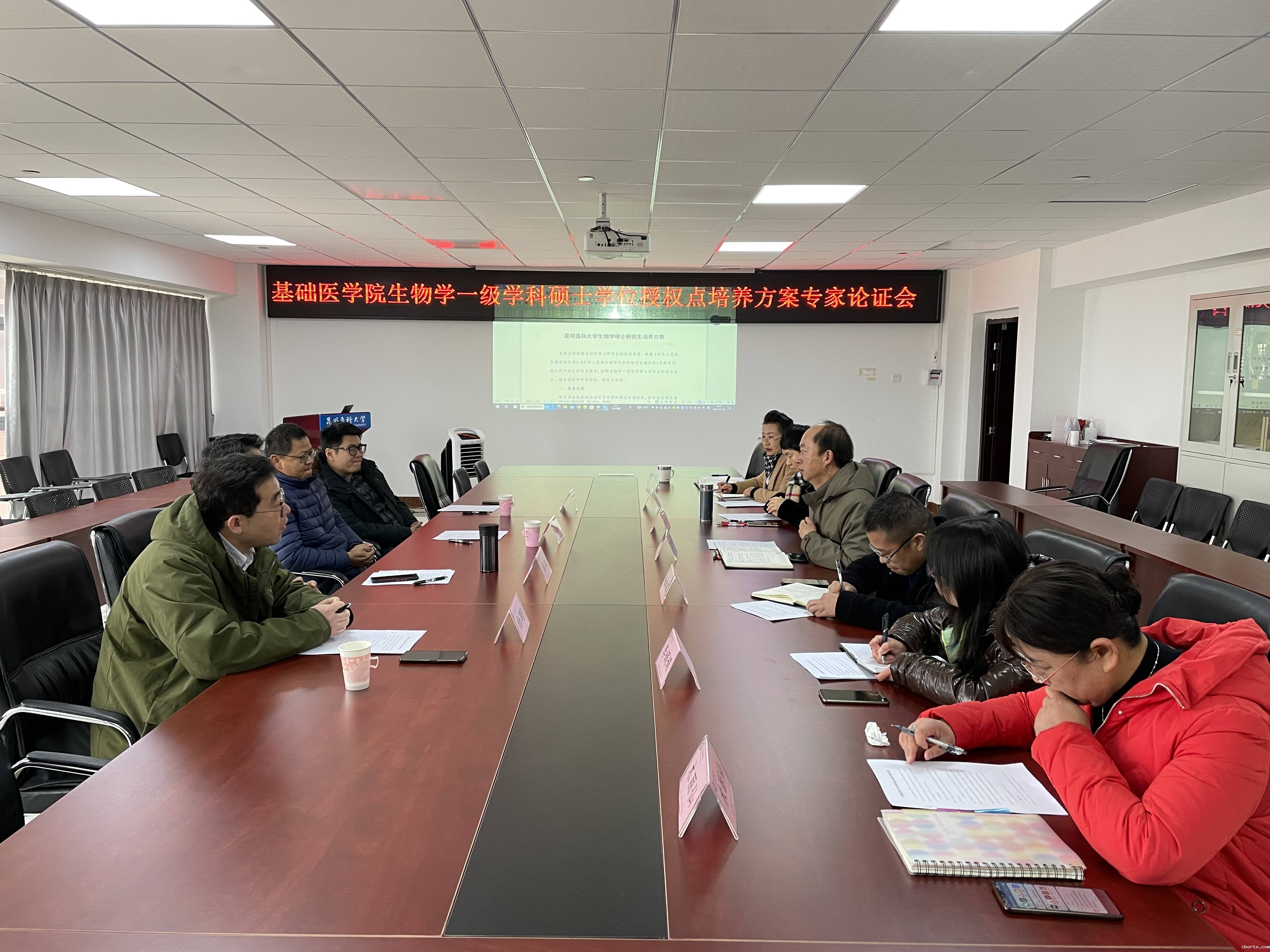 2月24日上午10点,基础医学院生物学一级学科硕士学位授权点培养方案专家论证会在基础医药大楼614会议室召开。基础医学院院长孙俊教授、副院长杨新旺副教授、生物学硕士学位授权点负责人朱月春教授以及学位点各方向负责人李力燕教授、李娟娟教授和木丽仙教授出席会议并参与讨论。