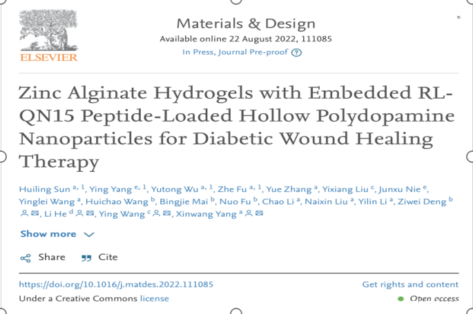 18luck备用登录基础医学院杨新旺博士团队从两栖动物皮肤分泌物中鉴定了一种促进皮肤再生活性的多肽RL-QN15,具有成为创伤愈合优秀候选药物先导分子的潜能,研究结果发表于国际著名期刊Pharmacological Research(2021,PMID: 33220421)且获得国家发明专利授权(ZL ZL201910913216.X);进一步通过纳米材料的附载与缓释作用,显著提升了RL-QN15的促修复活性,相关研究结果发表于Journal of Nanobiotechnology(2021,2篇,PMID: 34627291和PMID: 34600530)。