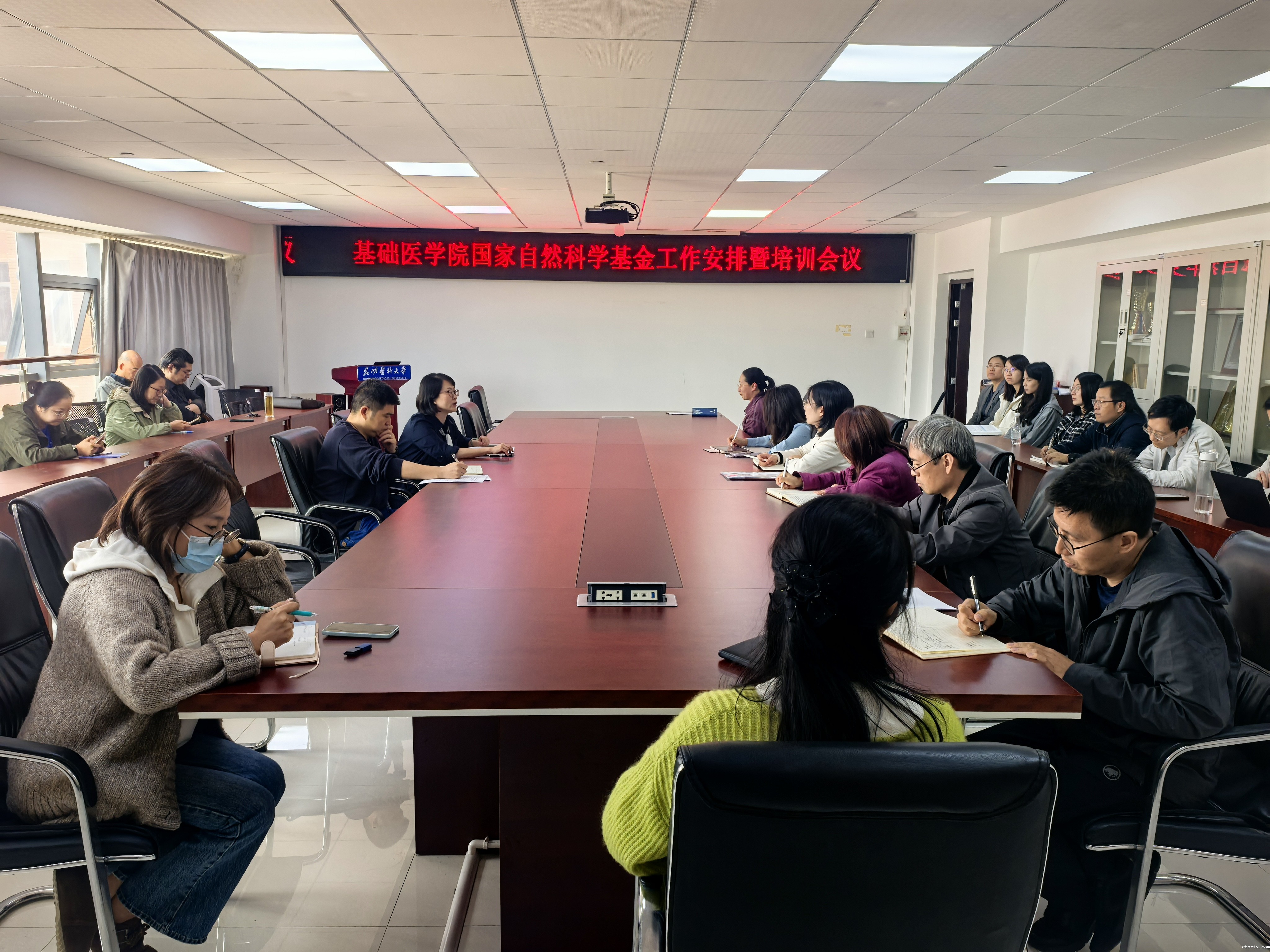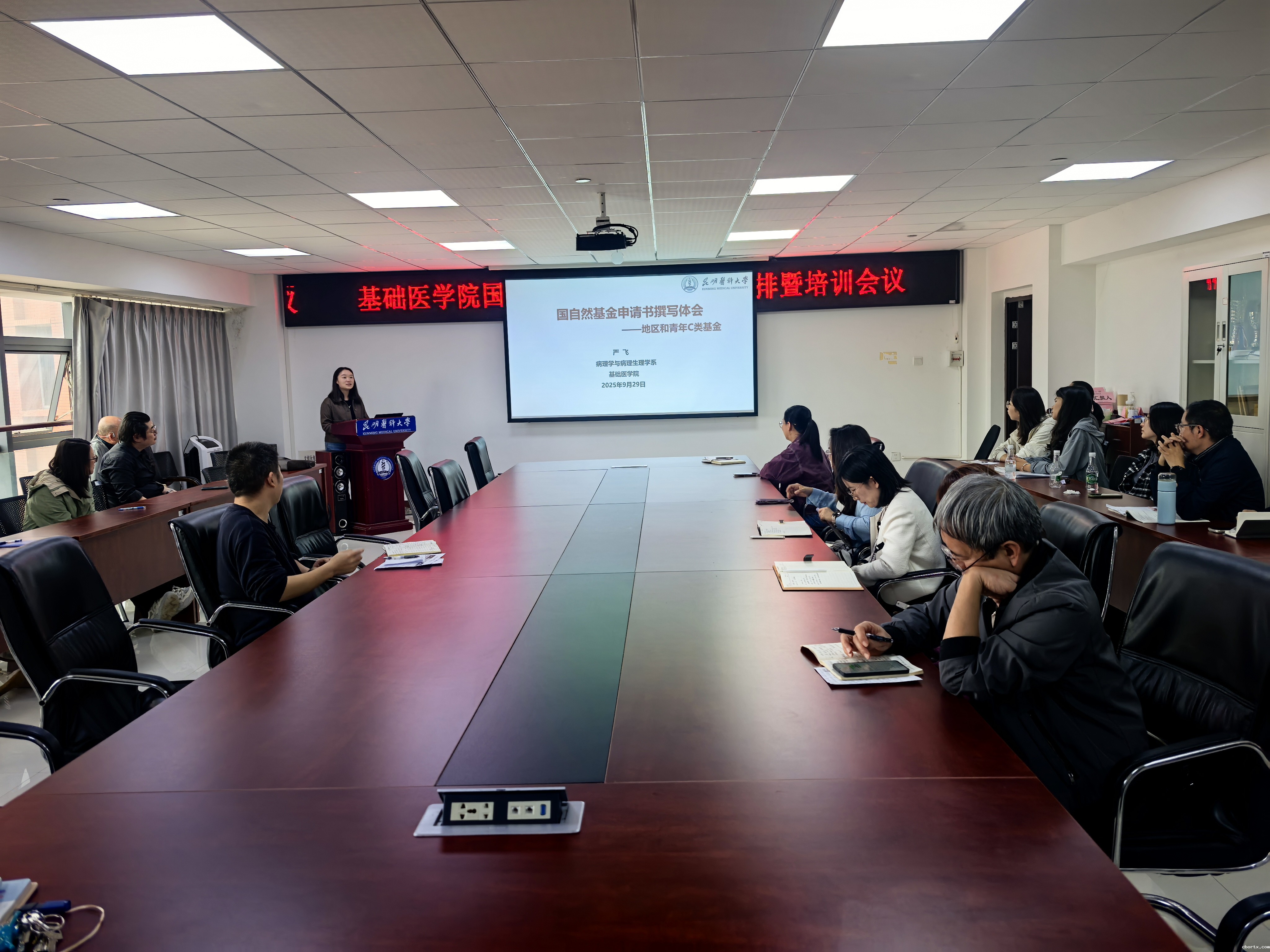 2025年9月29日,18luck备用登录基础医学院在东苑基础医药大楼614会议室召开学院2026年国家自然科学基金申报工作安排暨第一次申报专题培训会议。会议由学院分管副院长李盛安主持,各系(中心)中层干部以及全院45周岁以下博士学历教师参会。