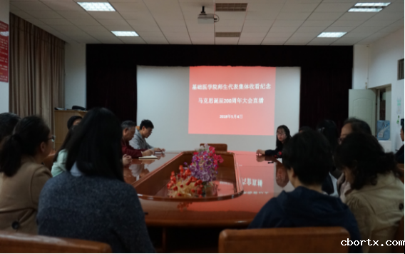 5月4日上午10:00,学院在科研楼1号楼基础医学院会议室集中收看纪念马克思200周年诞辰大会,认真聆听习近平总书记在纪念大会上的重要讲话,共同缅怀马克思的历史功绩。基础医学院党政领导,各党支部书记,教学、科研、管理骨干教师以及学生党员代表等40余人一同观看直播。