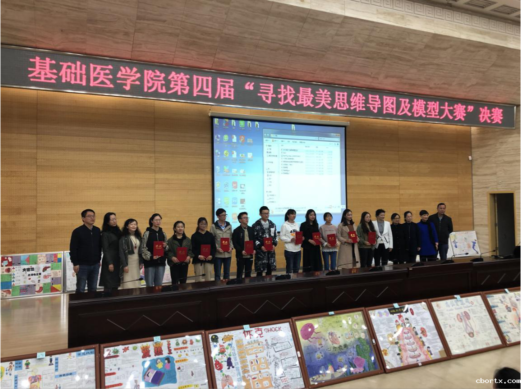本次比赛由基础医学院病理学与病理生理学系、教师第五党支部、基础医学院团委、基础医学院教学办、2016级临床八大班和2017级全科四大班共同承办。比赛历时近1个月,规模远超前几届,共有3个年级、58个班级、339个团队、3126名学生参赛,共创作出339幅思维导图作品。通过学生评分、教师评分、现场投票、微信投票等多个环节层层选拔,最终评选出75幅优秀思维导图作品,其中遴选出25幅精彩作品进行创作思路汇报并角逐一、二、三等奖。同学们纷纷表示,通过参加思维导图比赛,切实掌握了归纳和整合知识的有效方法,个人的能力得到了锻炼,团队协作能力、沟通能力和表达能力也得到了提升。各级领导和评委老师对比赛的意义和思维导图在学习中的运用给予了极大的肯定,并鼓励同学们在今后的学习和生活中,运用思维导图作为工具,传播知识,促进社会发展。