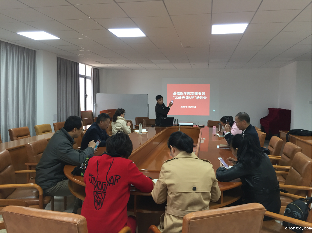 11月8日,为创新党建学习,进一步提升各党支部服务质量,推进“互联网+党建”工作开展取得实效,基础医学院开展了“云岭先锋APP”操作培训,教师第十一党支部书记白涛对“云岭先锋APP”手机的使用、管理进行了全面培训,各党支部书记参加培训会。