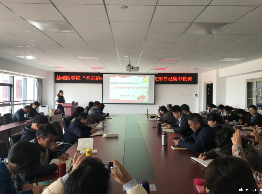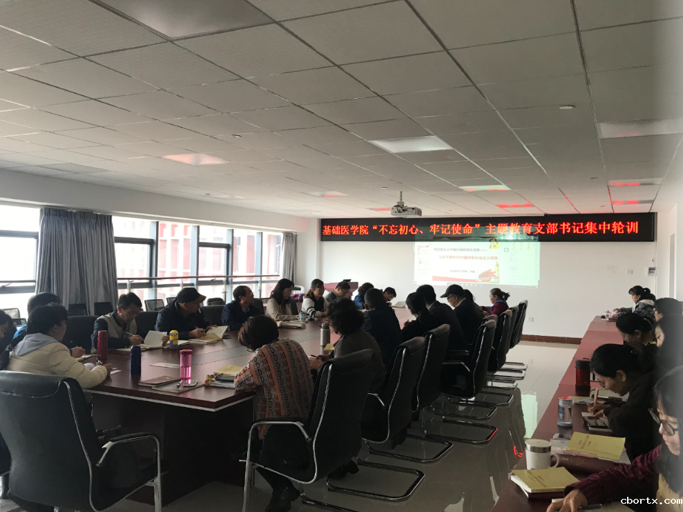 为在全院党员中扎实开展好“不忘初心、牢记使命”主题教育,切实深入贯彻习近平新时代中国特色社会主义思想和党的十九大精神,进一步推进党支部的规范化、标准化建设,基础医学院党委组织了“不忘初心、牢记使命”主题教育党支部书记集中轮训。学院党政领导、各党支部书记、支委30余人参加了轮训。集中轮训分为上午的集中授课培训和下午的专题分组研讨。
