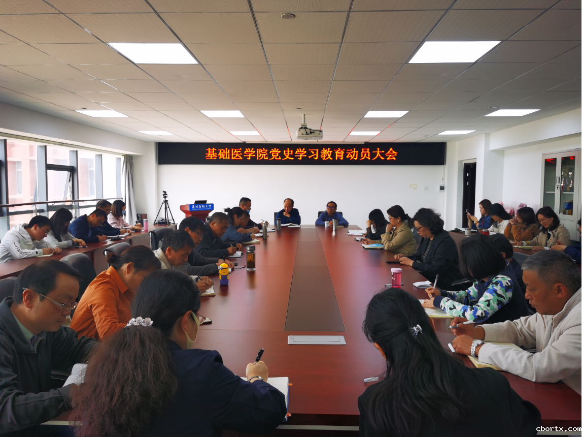 3月30日下午,基础医学院召开党史学习教育动员大会,深入学习贯彻习近平总书记在党史学习教育动员大会上的重要讲话精神,按照中央、省委、省委教育工委和学校党委安排部署,结合学院实际,对学院开展党史学习教育进行动员部署。学院党政领导、党委委员,学院中共党员的中层干部,各党支部支委共计40余人参加会议。