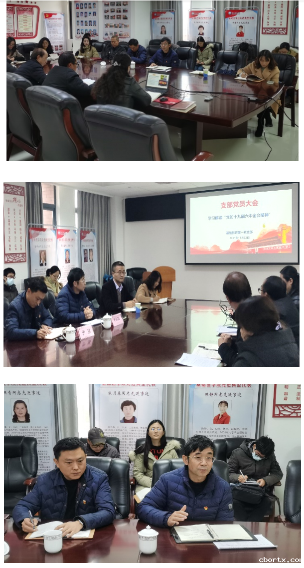 2021年11月22日上午,基础医学院教师第一党支部组织召开党的十九届六中全会精神专题学习会。学校党委书记尹向阳参加学习并作总结讲话。学校党委办公室主任于强、学院党委书记杨正洲、学院院长孙俊、教师第一党支部全体党员和辅导员及学生代表参加了此次学习研讨。