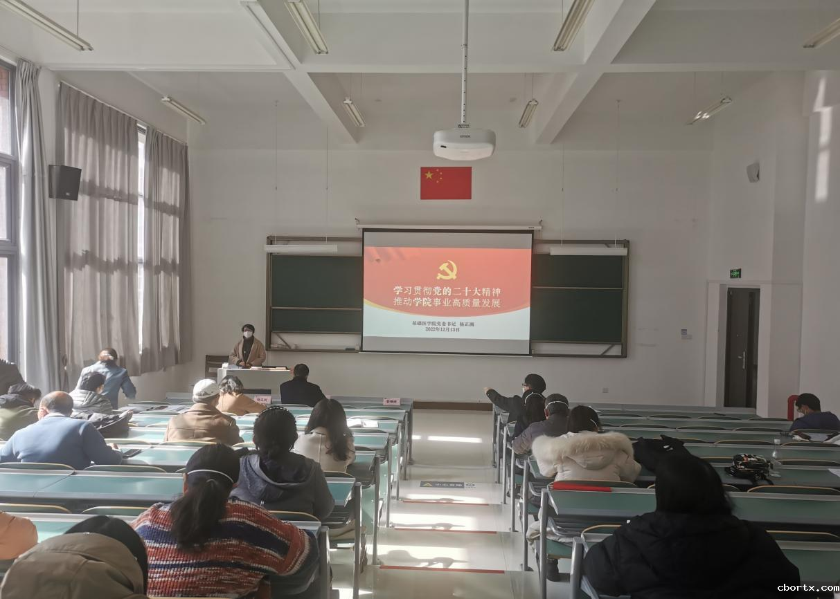 12月13日,基础医学院在东苑医药基础实验大楼205教室举行学习贯彻党的二十大精神宣讲报告会。学院党委书记杨正洲向学院教职工宣讲、解读党的二十大精神。