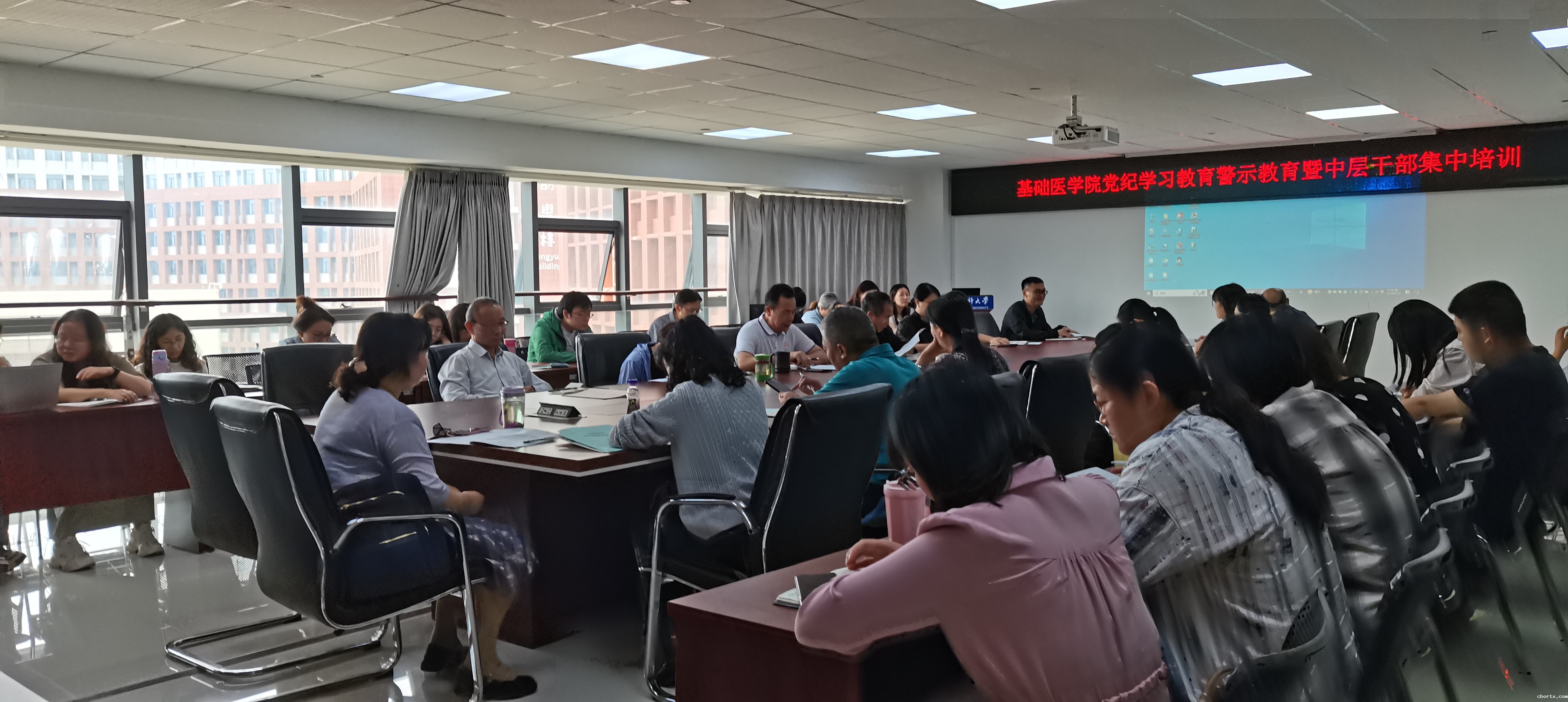 6月17日-18日,基础医学院领导干部党纪学习教育第二次读书班开班并开展党委理论学习中心组集中研讨和专题辅导培训,学院党政领导班子及全体中层干部参加学习。