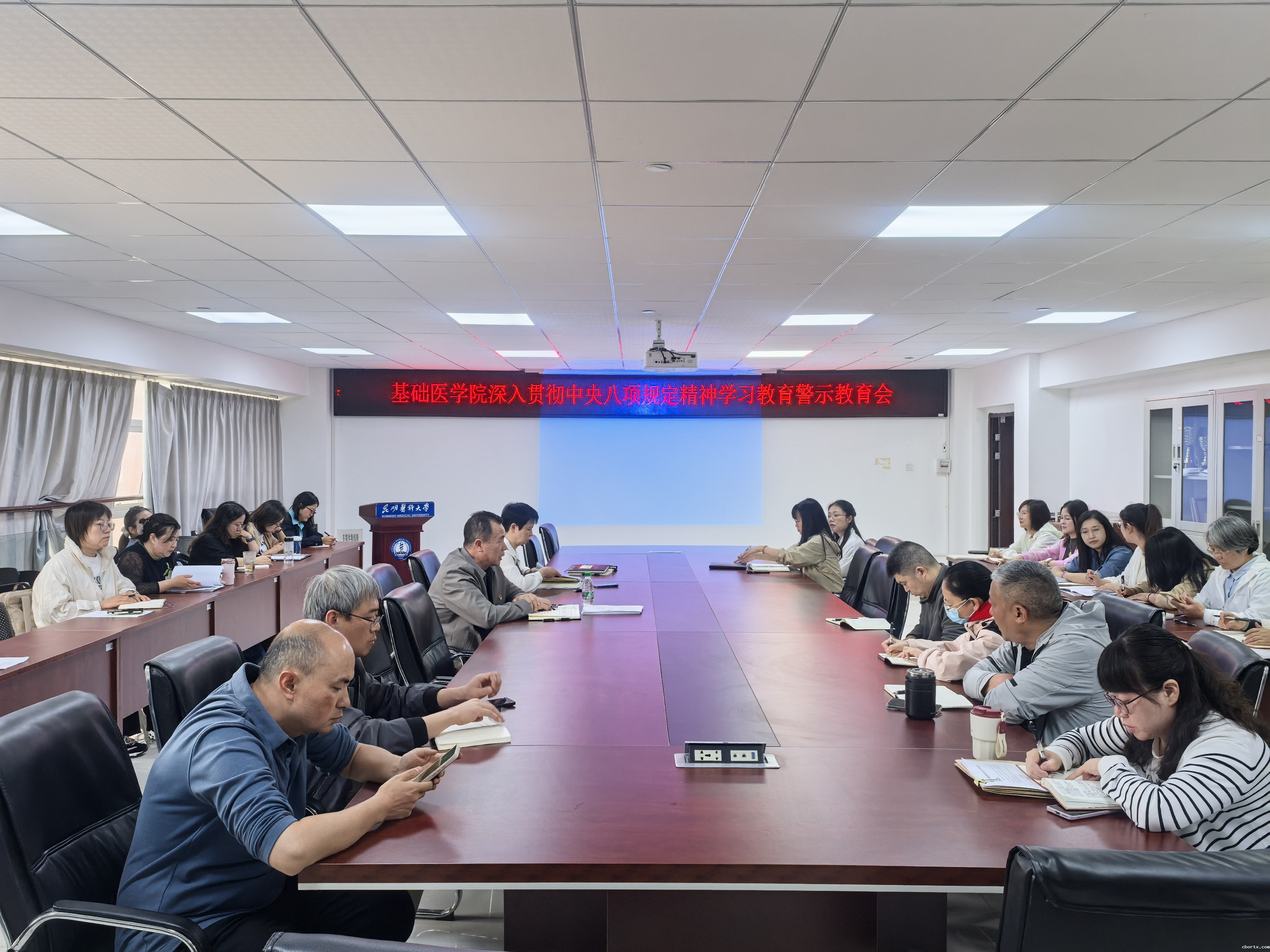 5月15日,18luck备用登录基础医学院开展深入贯彻中央八项规定精神学习教育警示教育会在基础医药大楼614会议室召开,深入学习党的十八大以来深入贯彻中央八项规定精神的成效和经验,结合开展深入贯彻中央八项规定精神学习教育,落实上级有关工作部署要求,集中学习纠治党员干部和公职人员违规饮酒问题八个重点方面。