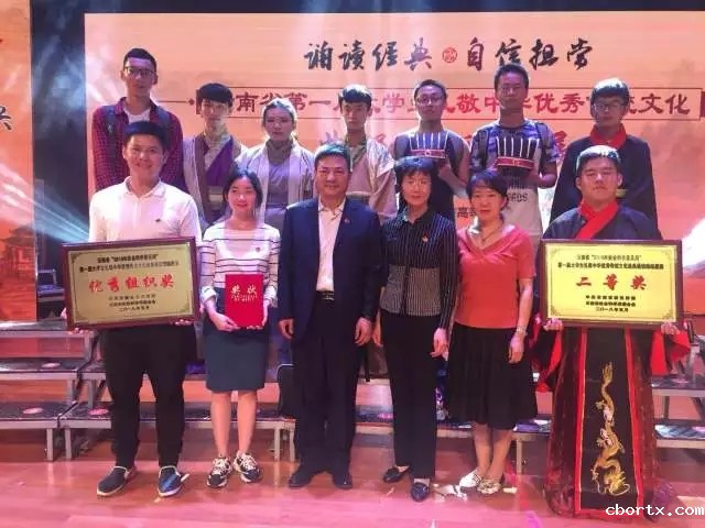 为响应践行“四个自信”中的“文化自信”,促使传统文化走出课本、走进校园。云南省第一届大学生礼敬中华优秀传统文化经典诵读现场展演于2018年5月25日19:00在云南中医学院兰茂堂举行,本次展演由中共云南省委宣传部、云南省社会科学界联合会主办,云南中医学院、云南省高等院校德育研究会承办,我院携手人文与管理学院编排的《梦回南宋,精忠报国》参加了此次展演评比,并荣获二等奖和优秀组织奖,我院张培楠老师及人文学院邵爱婷老师荣获优秀指导教师奖。