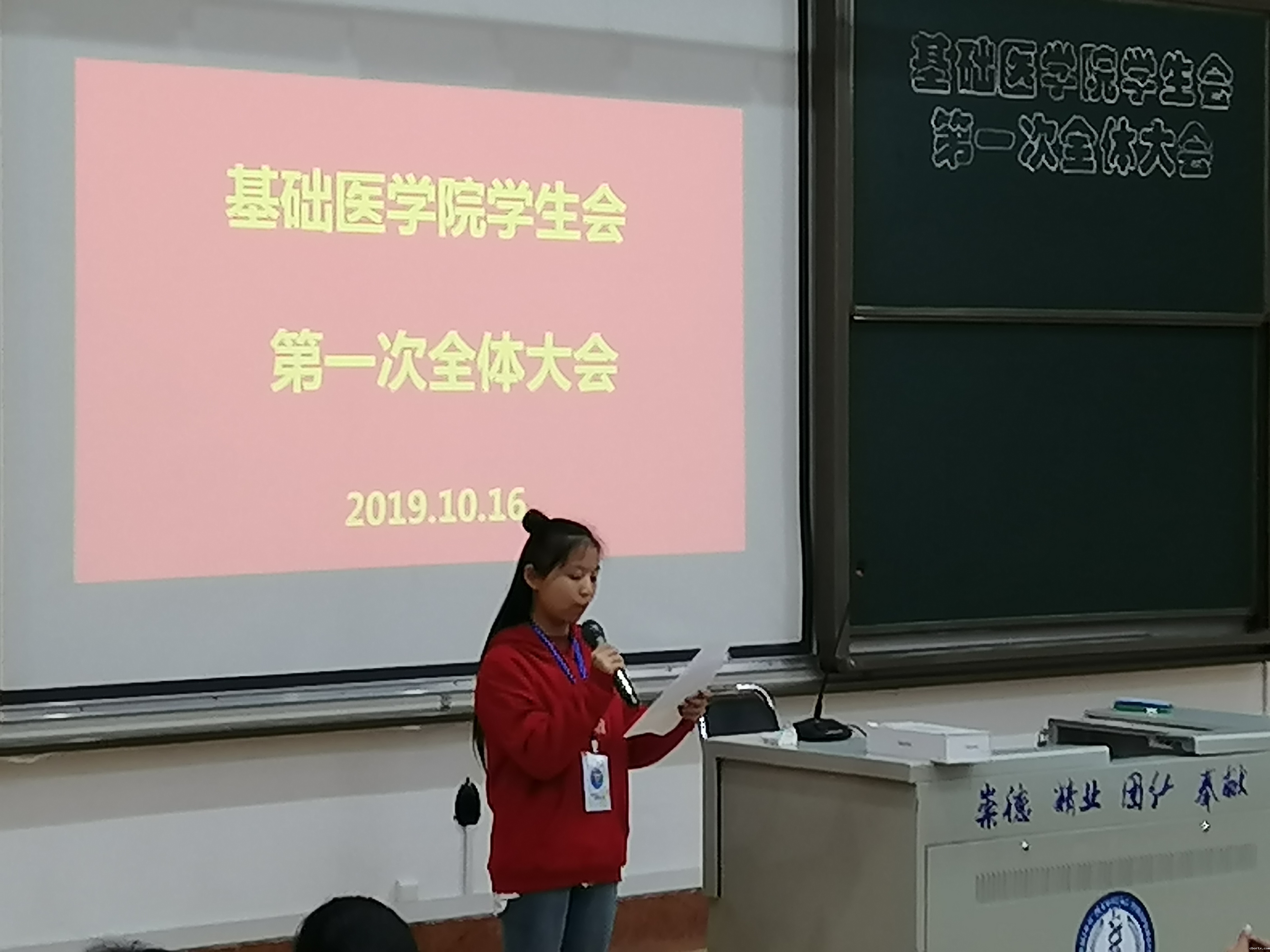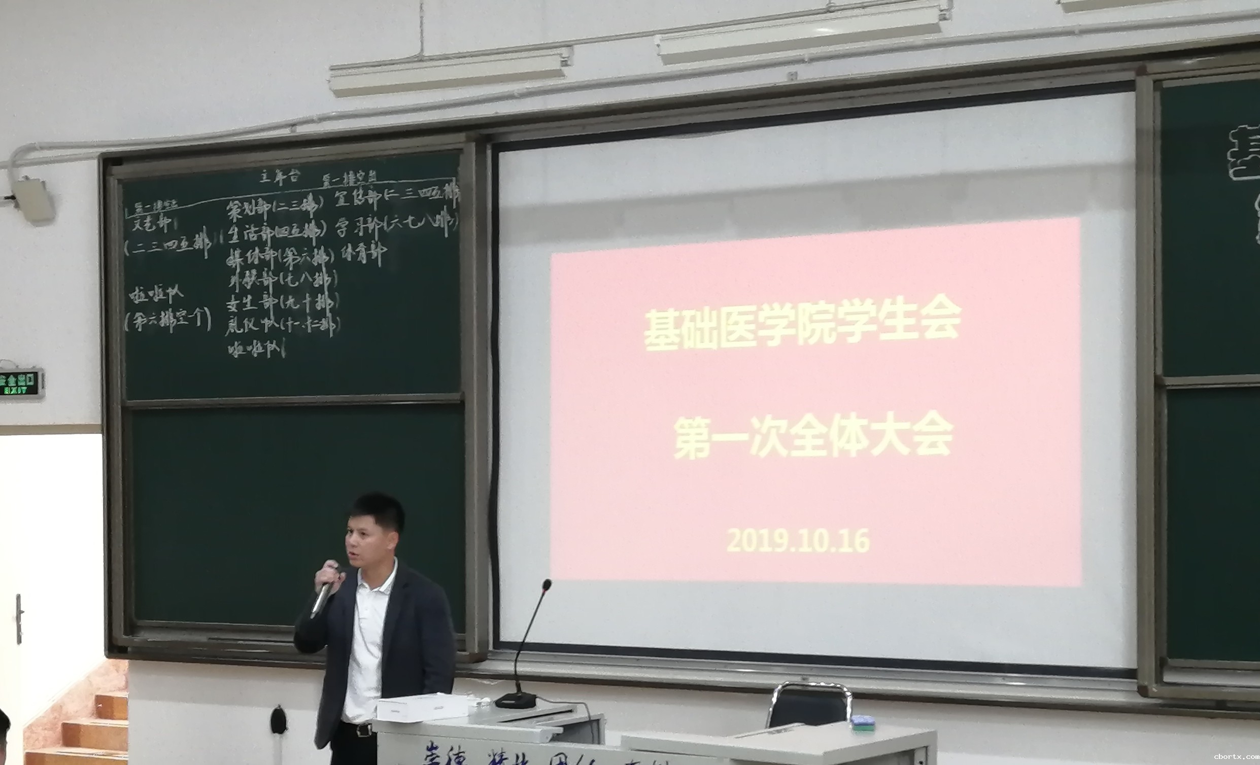 历经一个小时,基础医学院学生会第一次全体大会圆满结束。本次会议的召开为学生会新学年的工作做了一个良好铺垫,也让新干事全面了解学生会的工作职能和规章制度,清楚自己的职责所在。希望学生会全体成员将“温暖在基础,有事就找红衣服”的红衣服精神铭记于心,在今后的工作学习中不断的充实自己,锻炼自己,将学生会建设成为一个朝气蓬勃、积极向上、能让广大同学信赖的学生组织。