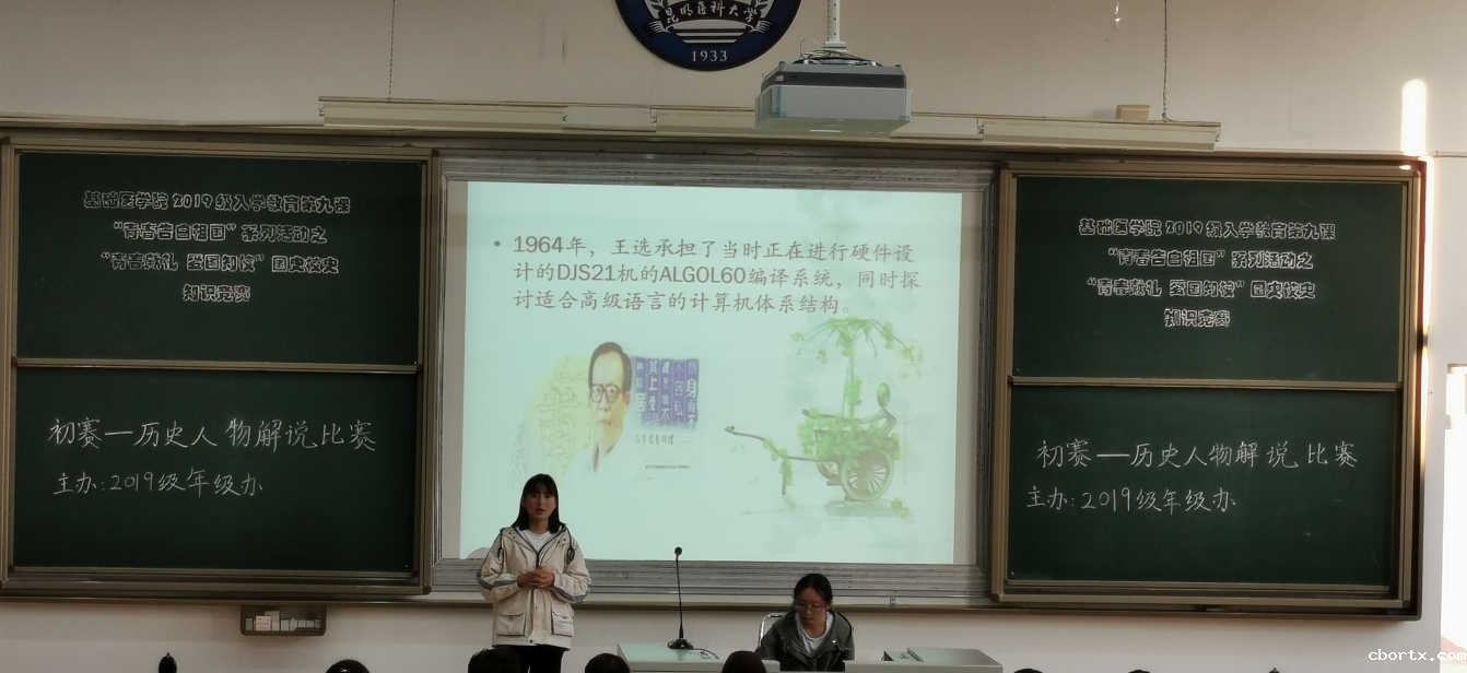 2019年10月19日晚17:30,由基础医学院2019级年级办主办,2019级全科医学三大班承办的“青春献礼?爱国知校” 国史校史知识竞赛初赛——历史人物解说大赛在教学楼5104顺利举行。