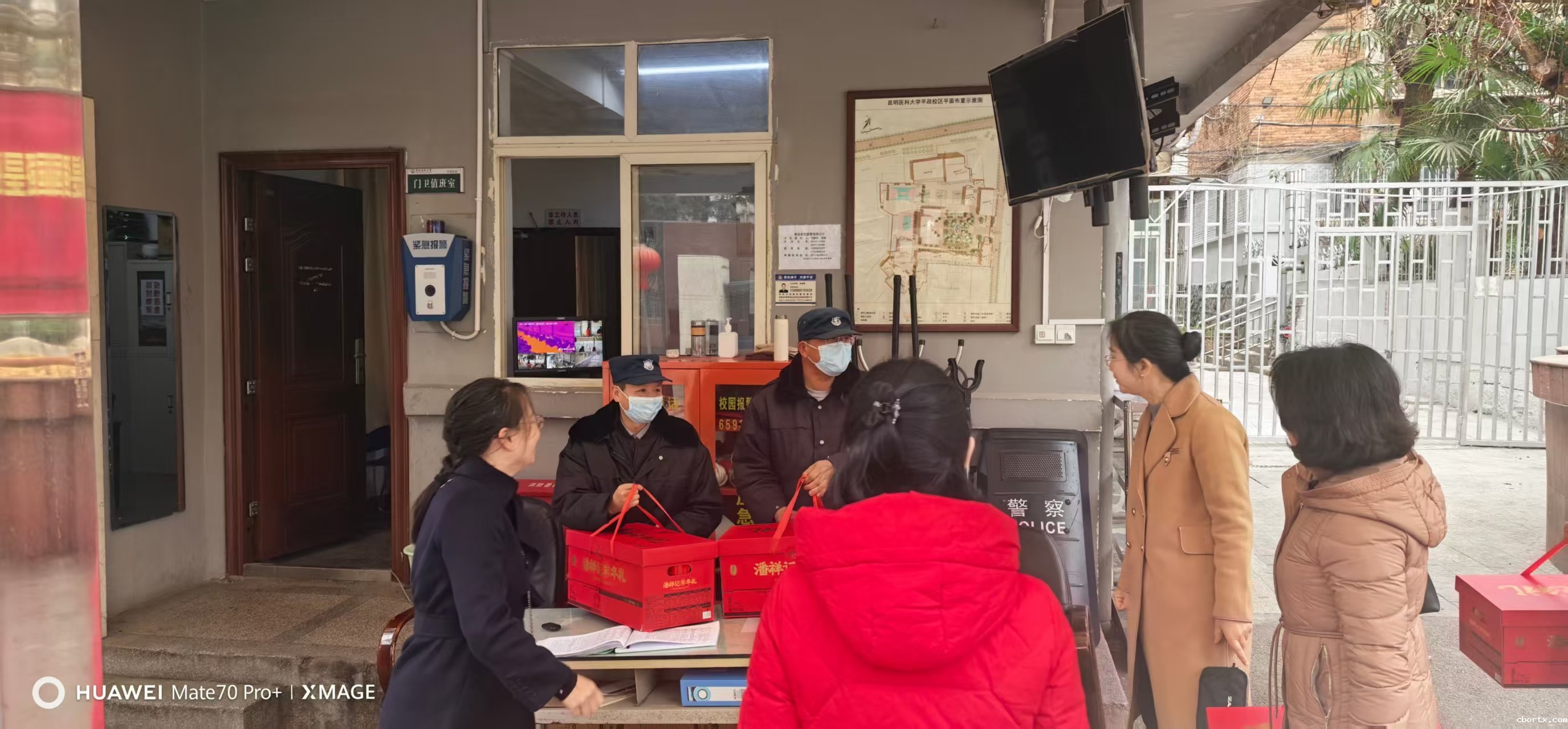 春节前夕,奚春睿副校长到平政校区进行春节慰问。奚春睿副校长看望、慰问了校区门卫、宿管、食堂、保洁、家属区值班等除夕日在岗工作的教职员工。她代表学校向员工们表达了感谢之意,把学校的关心关怀、温暖和祝福一一传递给每一位教职员工。同时她要求节日期间在岗人员要用心用情做好校区留校学生的管理和服务保障工作,让校区师生共同度过一个欢乐祥和的春节。平政校区管委会吴美芸主任、吴洁副主任陪同慰问。