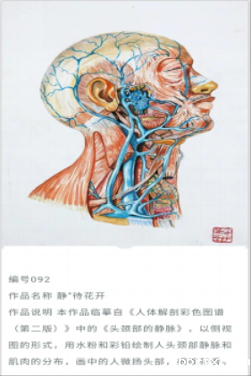由中国解剖学会举办的首届全国医学生解剖绘图大赛于2018年8月3日在内蒙古呼和浩特市落下帷幕。全国179家单位的近千幅优秀作品入围本次赛事,大赛遵循科学性、专业性和艺术性的原则,历时近半年,经过初赛、复赛、网络投票等层层角逐,50幅作品进入决赛。经过中国解剖学会的15位专家(含4位外籍专家)的综合评定,最终评选出特等奖5名,一等奖15名,二等奖30名。我院2017级麻醉学专业学生牛宇菲的作品《静待花开》荣获二等奖。