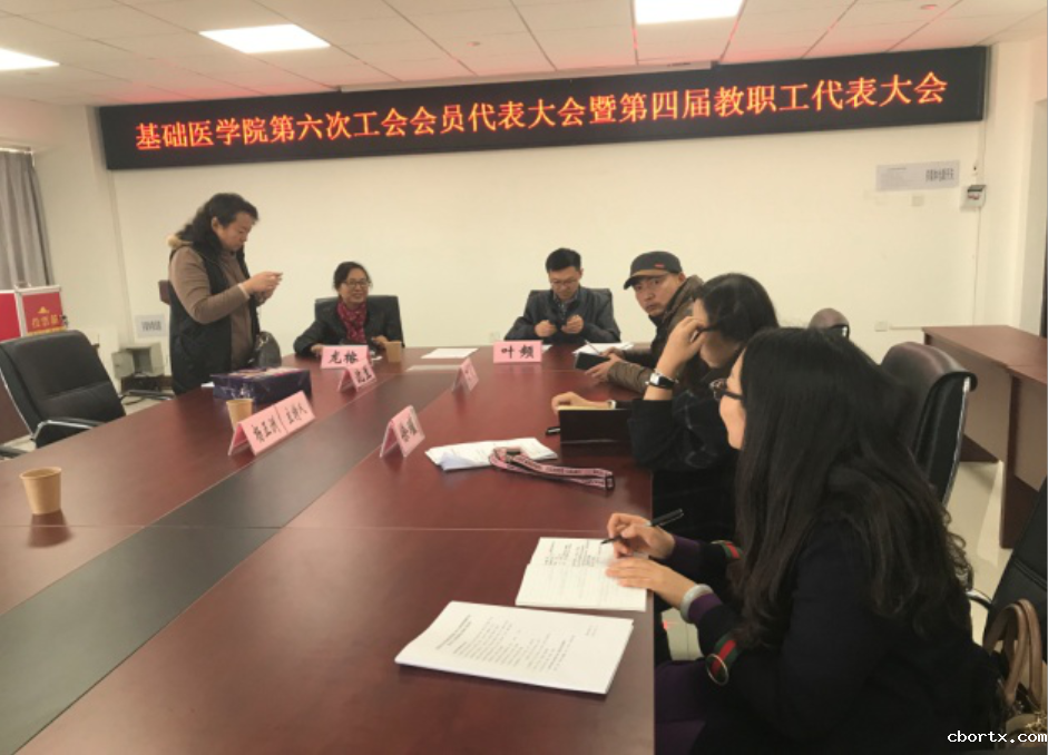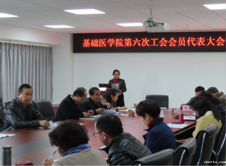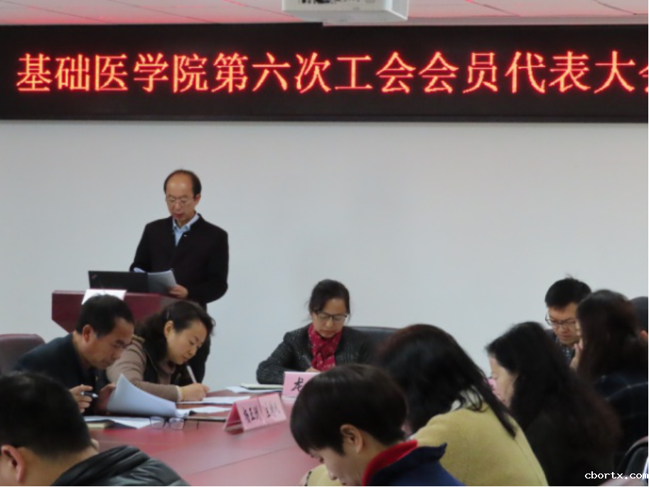12月18日上午,基础医学院第六次工会会员代表大会暨第四届教职工代表大会在基础医药大楼614会议室隆重召开,新一届工会会员正式代表、党委委员、各部门主要负责人、党支部书记、上届工会委员共50余人出席会议,民主党派基层负责人列席会议。会议由党委书记杨正洲同志主持,大会审议并通过了2018年基础医学院工作报告、基础医学院第五届工会工作报告、财务报告;同时通过了教学科研、职工权益、提案征集三个工作小组成员名单;选举了新一届工会委员会委员。大会结束后召开了基础医学院第六届工会第一次委员会会议,选举龙榕同志担任工会主席,叶频同志担任工会副主席。委员会上各位委员进行了分工,委员们纷纷表示,将以最大的热情投入到工会的工件中,在学校工会和学院党委的领导下,用习近平新时代中国特色社会主义思想指导工作,围绕学校和学院中心工作,融入全局、服务全局,更好地实现工会的维护、建设、参与和教育的四项职能,增强职工凝聚力和主人翁精神,彰显职工正能量,积极投身到教学、科研、管理各项工作中,共建和谐校园,共创美好生活新局面!