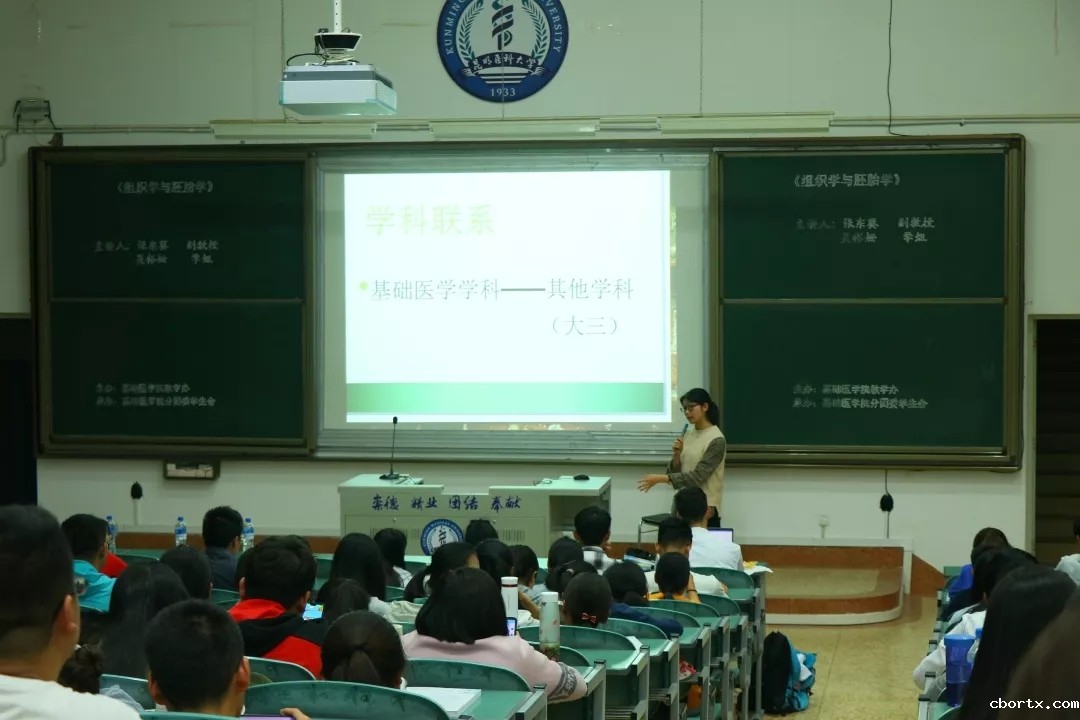 张老师首先从理论课和实验课两个角度讲解了学习组胚的方法技巧,并利用临床上的病例说明了学习组胚的重要性。对于理论课的学习,张老师提出要精力集中紧跟老师讲课节奏、扼要记笔记提高课堂吸收率两点要求;对于实验课的学习,老师认为将理论与实践相结合对于掌握知识有极大的帮助。之后,张老师还讲解了在观察组织时还原二维图像为三维构象、在总结知识时注意对比与联系等学习组胚的方法。同时,老师还提到了课前预习、课后复习对于学习组胚十分重要,有事半功倍的效果。