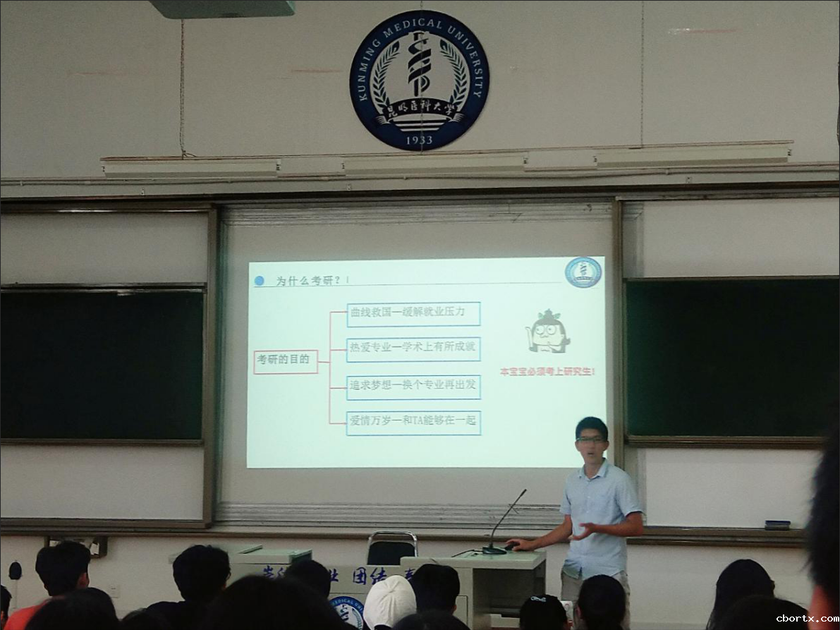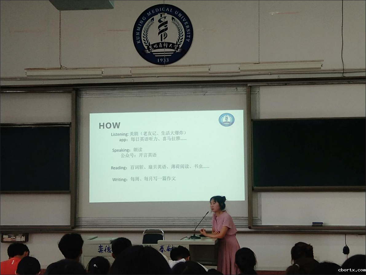 胡老师首先向大家介绍了罗靖学长。罗靖,系我校2017级麻醉专业硕士研究生,师从附一院邵建林主任,曾获得2018年18luck备用登录科研竞赛第一名、全国医学院校麻醉学知识竞赛第六名、云南省优秀学生干部,2018年年底以交流生身份到美国哈佛大学医学院进行了为期一个月的交流学习。他优秀的履历引得同学们阵阵惊叹。