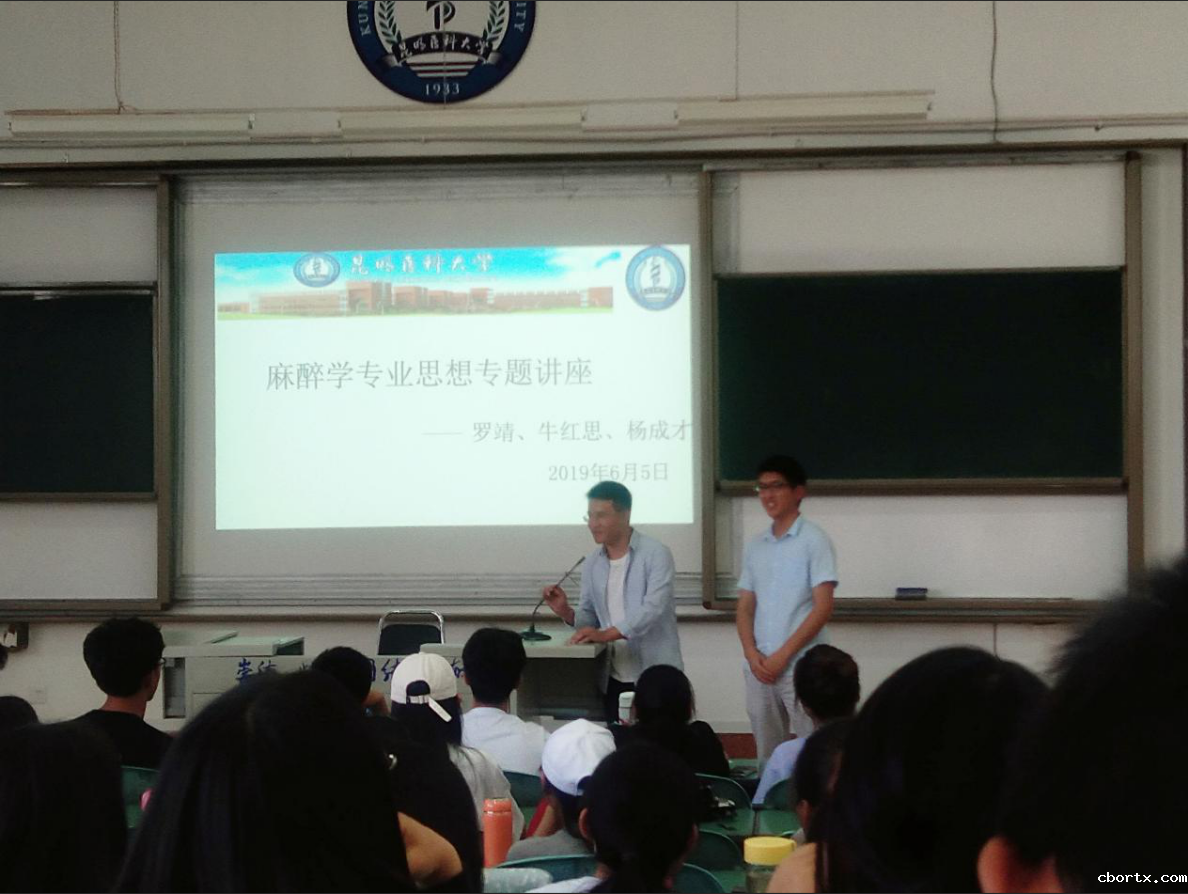 彩线轻缠红玉臂,小符斜挂绿云鬟,端午飘香之际,为了让麻醉专业同学对专业更加的了解,2018年级办胡老师给2016、2017、2018级的麻醉学子们送来了超级大福利,特邀请了我校罗靖、牛红思、杨成才三位优秀的研究生于2019年6月5日下午16:10在1306教室为麻醉班的同学们进行了麻醉学专业思想专题讲座。