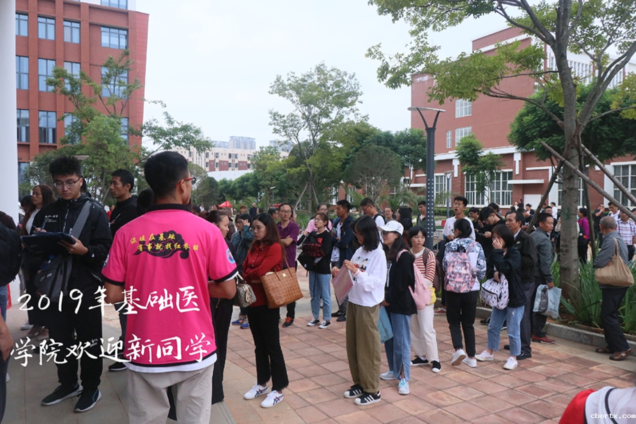 2019年9月3日,2019级新生入学报道,18luck备用登录基础医学院迎来了天南海北的新生们。基础医学院全体党政领导、学办老师、新生班导生和团委学生会以及治安志愿者组成了学院的迎新队伍,于学校呈贡校区东苑基础大楼圆形多功能厅完成了迎新工作,学校校长李松、校党委副书记李铭、副校长李燕、副校长徐绍琼等校级及相关部门领导莅临现场指导工作。
