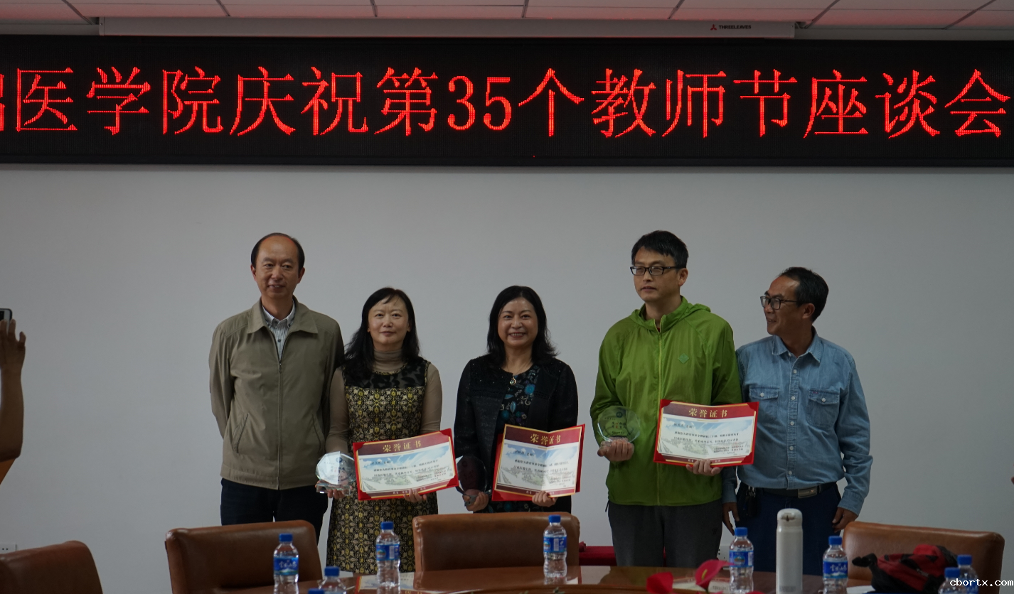 随后,学院工会为从教三十年的五位教师颁发了荣誉证书和纪念品,新老教师互赠了礼物,用尊敬之声、关爱之情温暖了每一位爱岗敬业的老师,这也是对教师最好的礼物。最后,生理学系冯晓丽老师和冯翠萍老师声情并茂地朗诵了《母亲的爱》和《根》,病理学与病理生理学系徐若冰老师用双语朗诵了《飞鸟与鱼》。在优美的诗文中,教师节座谈会落下了帷幕。