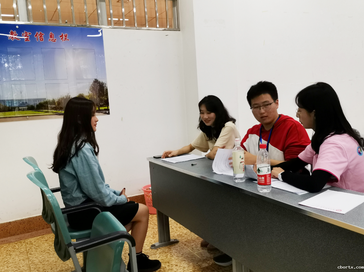 本次招新活动于2019年9月3日开始招新宣传,新生们可通过线上线下以及现场报名等方式参加各部门的招新选拔,至2019年9月6日晚,共计有400余名同学报名。本次面试工作学生会秉承着“公平、公正、公开”的原则,由各部门学生会干部组成评委团,认真严肃地对应聘学生进行面试。招新过程中,有些人紧张羞涩,有些人跃跃欲试,有些人自信满满,有些人热情大方。在自我介绍和部长提问两个环节中,表达了对加入学生会的热切渴望,以及想要服务同学、锻炼自己、增长才干、为学生会增光添彩的决心与热情。