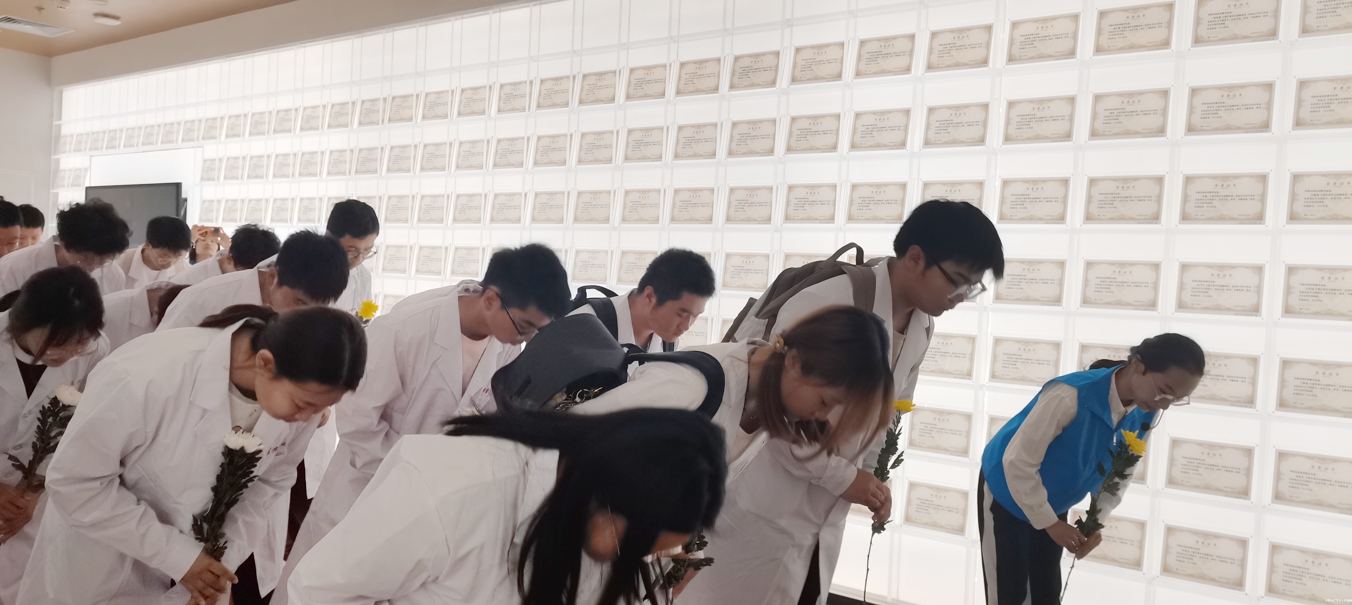 最后,学生在志愿者引导下对人体科学馆进行参观,并在参观中向遗体捐献志愿者鞠躬、献花,以表达对“无语良师”的崇高敬意。