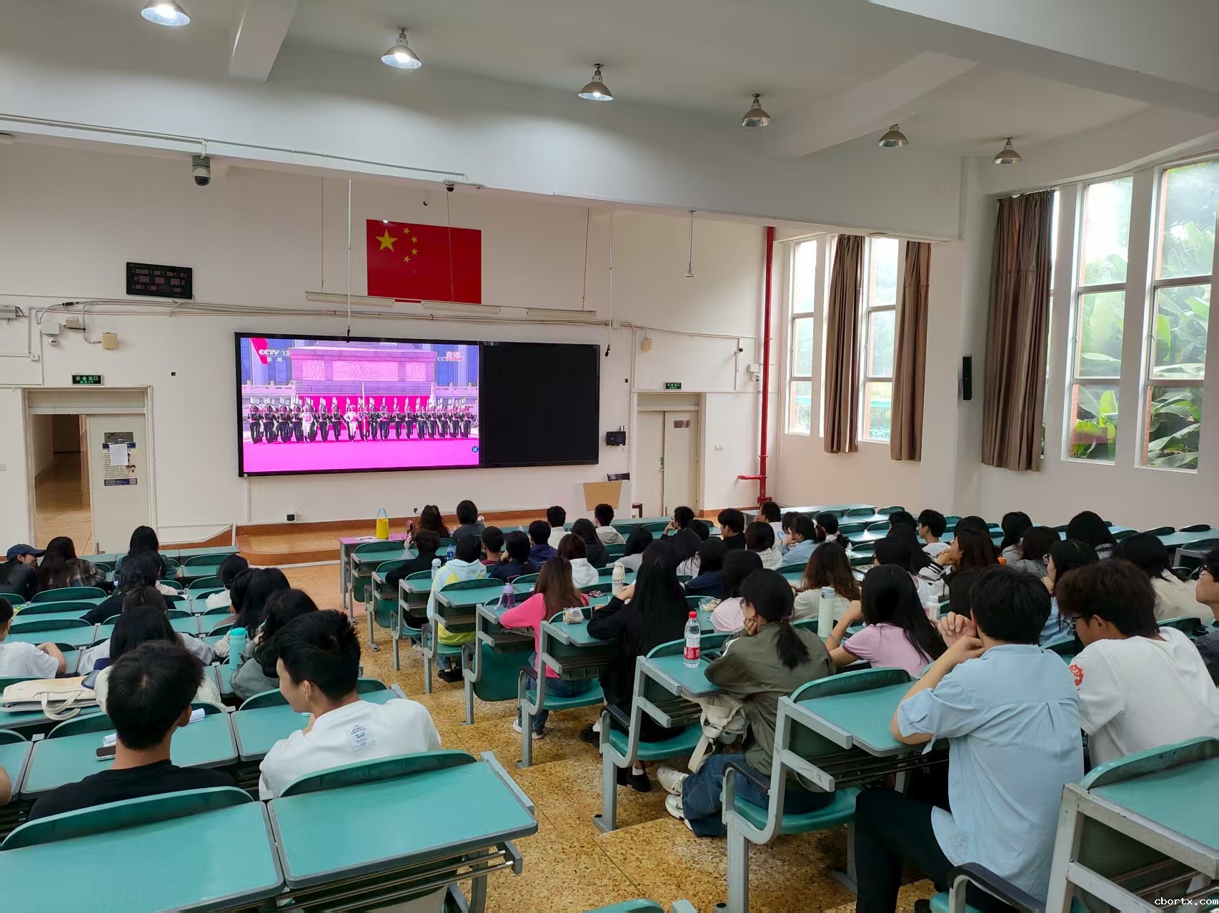 2025年9月3日上午9点,基础医学院组织师生代表集中收听收看纪念中国人民抗日战争暨世界反法西斯战争胜利80周年大会实况直播。学院党政领导和师生代表分别在三个分会场集体收看大会直播,同时各党支部组织师生通过各类网络直播平台,在线收听收看。