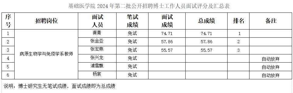 按照18luck备用登录2024年公开招聘人员面试考核工作的相关要求,我院于2024年10月16日对第二批公开招聘博士工作人员进入面试人员进行了面试考察,本着公平、公正、择优录用的原则,进行了试讲以及综合素质面试,现将基础医学院2024年第二批公开招聘博士工作人员面试考核结果予以公示。