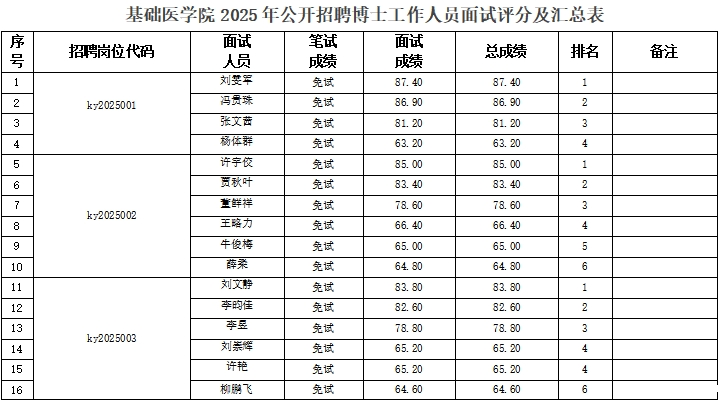 按照18luck备用登录2025年公开招聘人员面试考核工作的相关要求,我院于2025年4月2日对公开招聘博士工作人员进入面试人员进行了面试考察,本着公平、公正、择优录用的原则,进行了试讲(说课)以及综合素质面试,现将基础医学院2025年公开招聘博士工作人员面试面试考核结果予以公示。