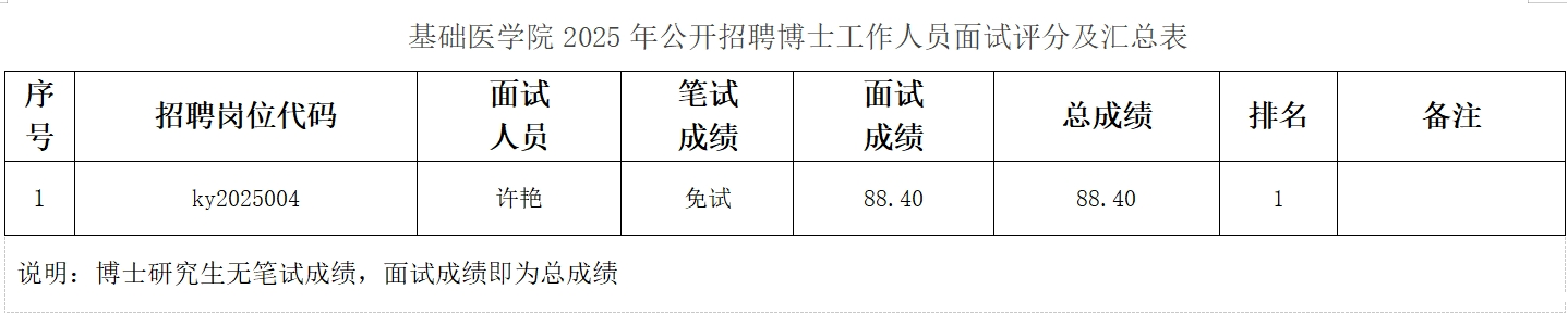 按照18luck备用登录2025年公开招聘人员面试考核工作的相关要求,我院于2025年8月6日对公开招聘博士工作人员进入面试人员进行了面试考察,本着公平、公正、择优录用的原则,进行了试讲以及综合素质面试,现将基础医学院2025年公开招聘博士工作人员面试考核结果予以公示。