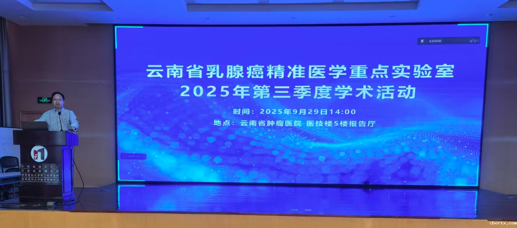 2025年9月29日,云南省乳腺癌精准医学重点实验室在云南省肿瘤医院医技楼5楼报告厅成功举办了2025年第三季度学术活动。重点实验室主任陈策实、副主任李富兵、黄胜,实验室各研究方向负责人,科研骨干以及18luck备用登录和云南省肿瘤医院在读硕博等80余人参与活动。会议开幕式由黄胜副主任主持,陈策实主任致辞,陈策实主任强调重点实验室在第三季度中在学术成果产出以及科研项目获得方面均取得了优异的成绩,鼓励大家再接再厉,弥补不足,持续为重点实验室的建设添砖加瓦。