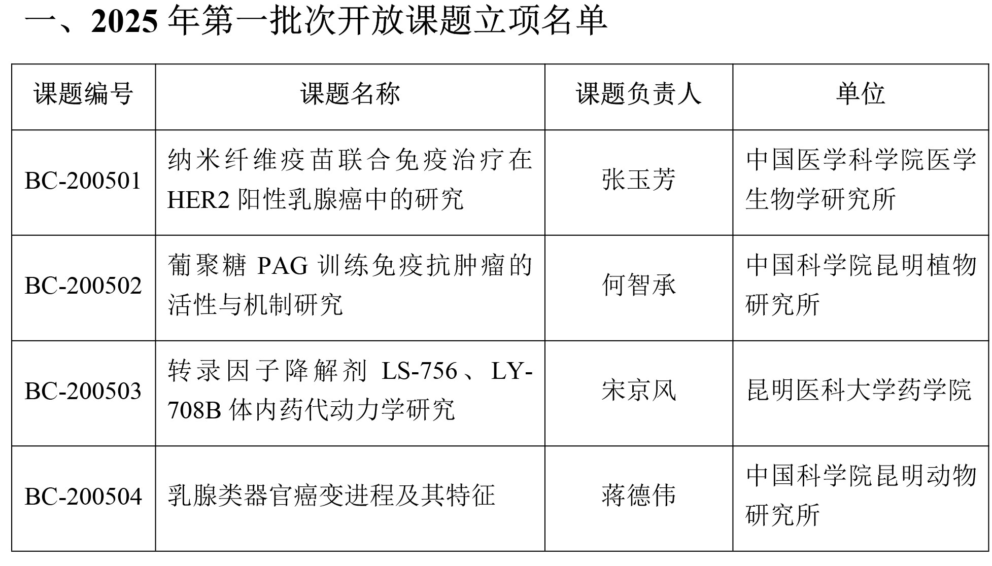 4.其他要求:详见《云南省乳腺癌精准医学重点实验室开放课题管理办法》。