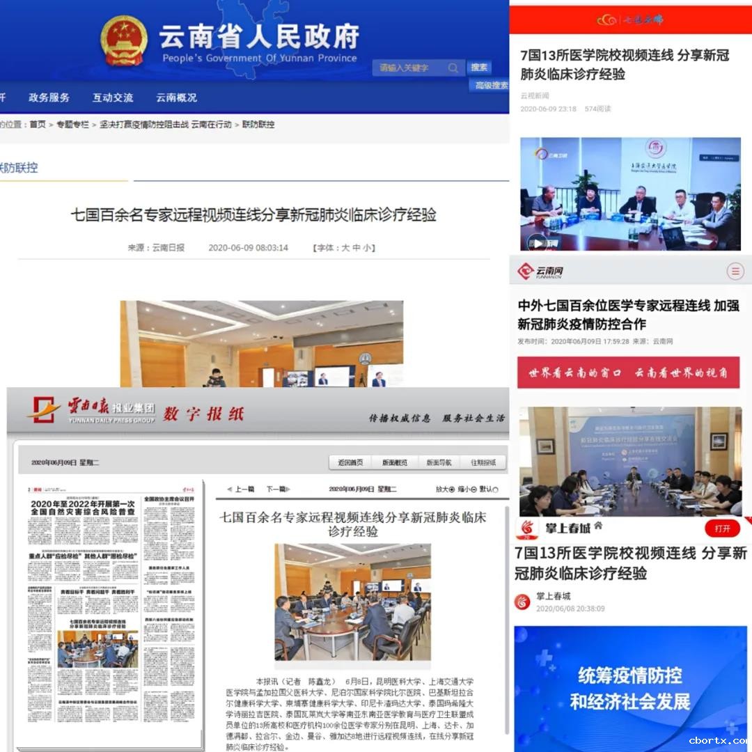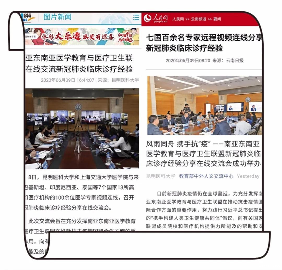 6月8日下午,由南亚东南亚医学教育与医疗卫生联盟秘书长单位18luck备用登录、理事长单位上海交通大学医学院共同发起,孟加拉国父医科大学、巴基斯坦拉合尔健康科学大学、印度尼西亚卡渣玛达大学、泰国玛希隆大学等部分联盟成员院校共7个国家13所医学院校参与的新冠肺炎临床诊疗经验分享在线交流会在我校成功举办,会议得到广泛关注和高度评价,新华网、人民网、教育部中外人文交流中心微信公众号平台、云南省人民政府网、云南日报、云南卫视新闻、云南网、掌上春城等十余家主流媒体纷纷报道及转载了会议举办情况,充分肯定了18luck备用登录举办本次视频连线会议的重要意义及在加强联盟院校间抗疫合作中的引领作用,进一步扩大了学校的影响力,对联盟未来发展意义重大。