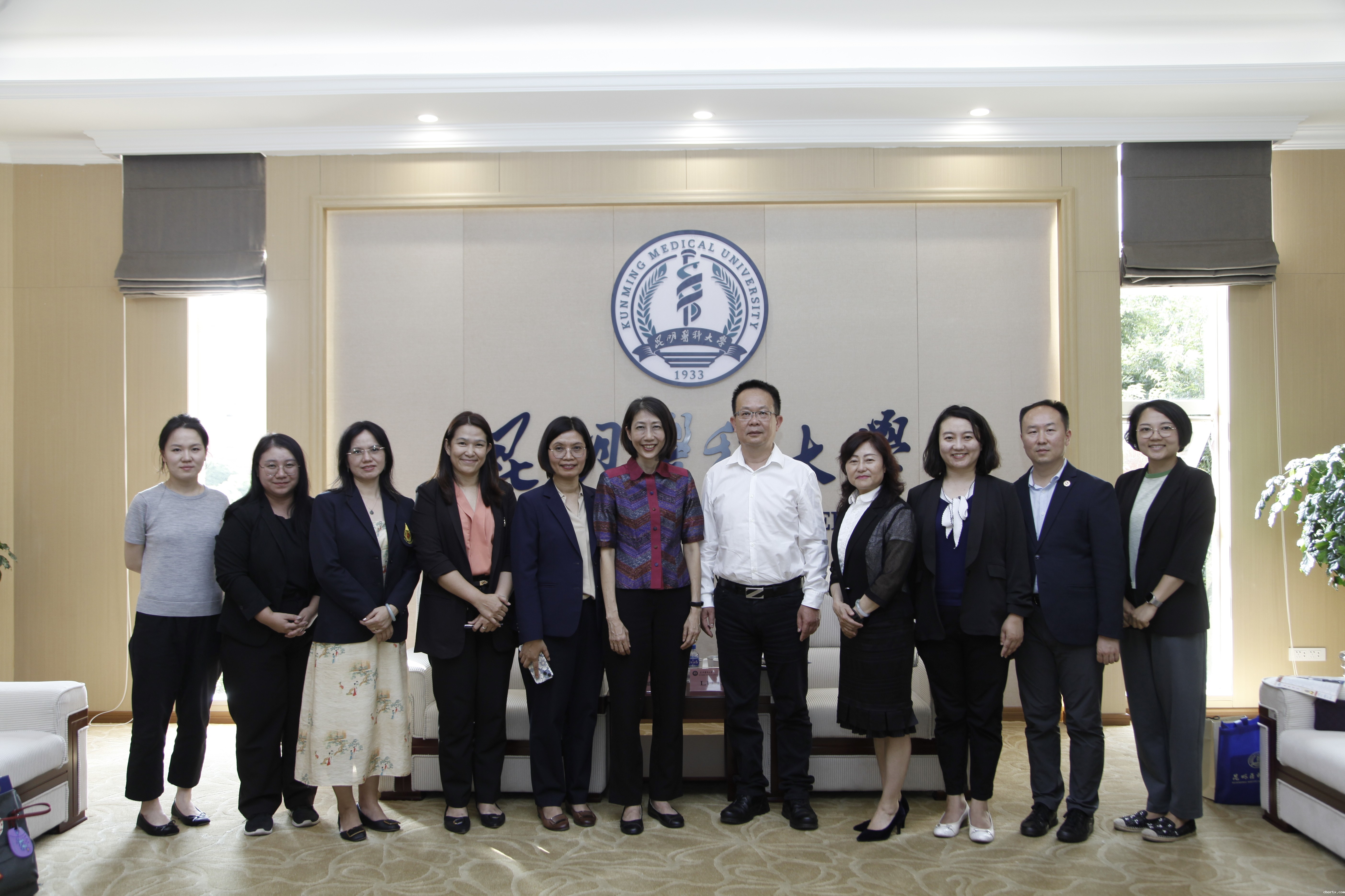 陆地向代表团介绍了学校的基本情况以及近年来对外交流合作取得的成绩。他表示,学校与泰国高校和机构交流合作有着40余年的历史。皇太后大学是学校在泰国的重要合作高校之一,也是学校牵头发起成立的南亚东南亚医学教育与医疗卫生联盟创始成员单位,双方自2015年建立校际交流合作关系以来,在人才培养、师生互派、学术交流等领域开展了富有成效的合作。学校愿进一步推动双方在学生交流、教师互聘、合作科研等领域开展更加广泛而深入的合作,为推动中泰人文教育交流,促进云南与清莱府友好交往作出新的贡献。