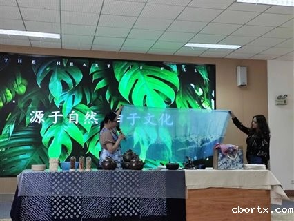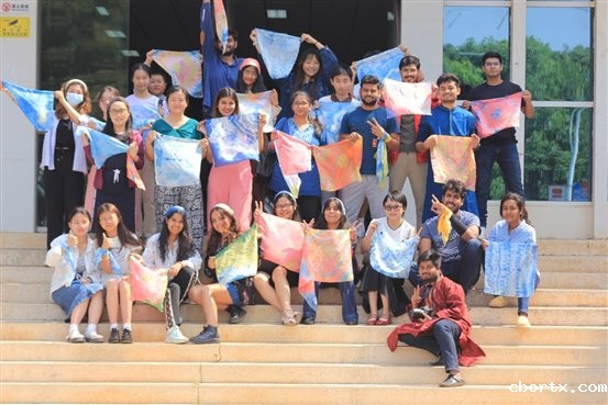 Firstly, Ms. Yang Yuyan shared with the students in both Chinese and English language the historical origins, distribution characteristics, dyeing principles, plant dye acquisition, and showed cultural and creative works design of intangible cultural heritage of tie dyeing. During the presentation, Ms. Yang actively interacted and exchanged ideas with the students, creating a lively atmosphere on site.