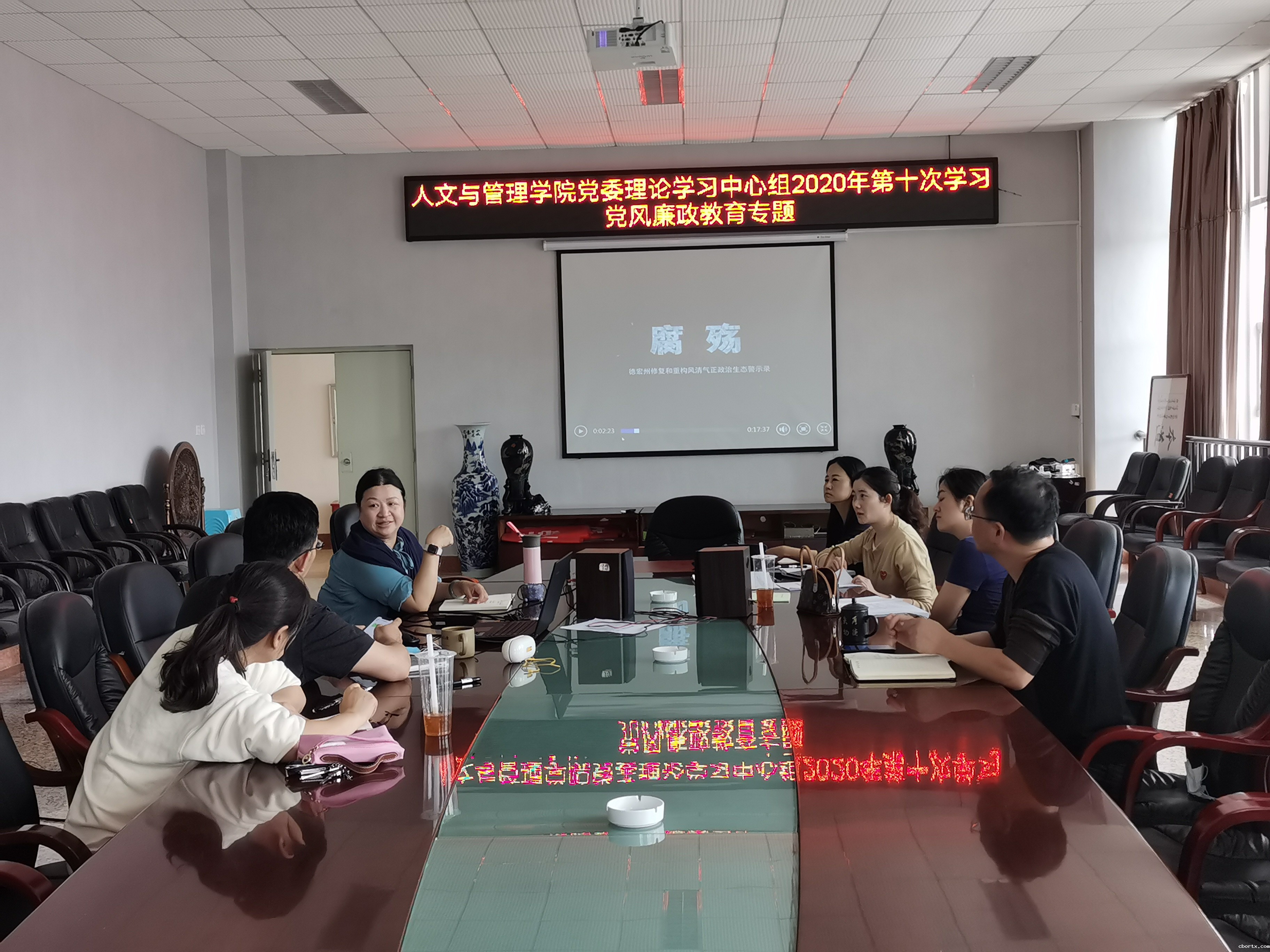 7月21日(星期二)中午,学院党委理论学习中心组组织党风廉政专题学习,观看警示教育片《腐殇》和《八小时之外》。