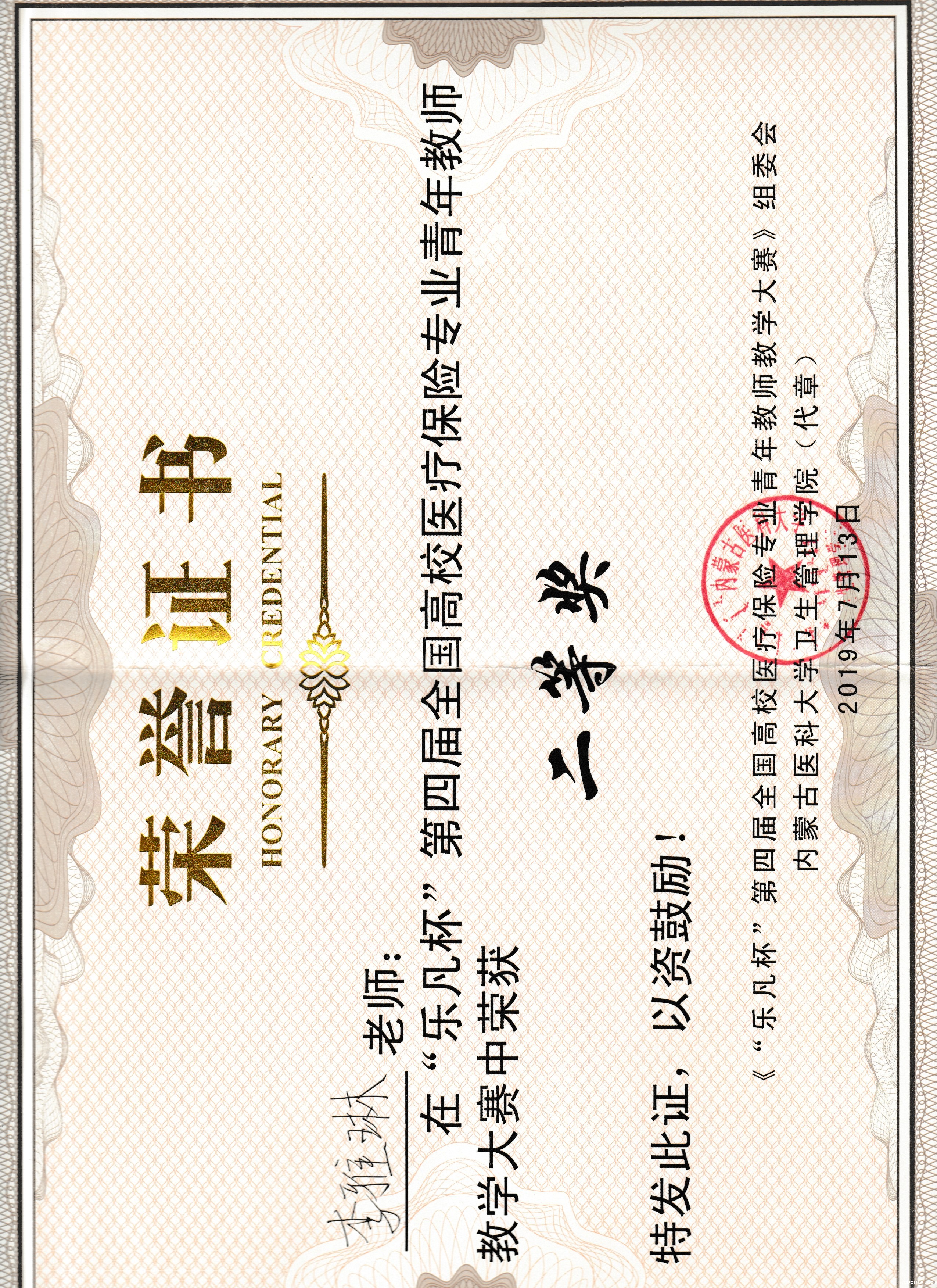 第四届全国高校医疗保险专业教育教学论坛于2019年7月12日-7月15日在内蒙古医科大学召开,7月12日晚,李雅琳老师参加了青年教师讲课比赛,获得二等奖。