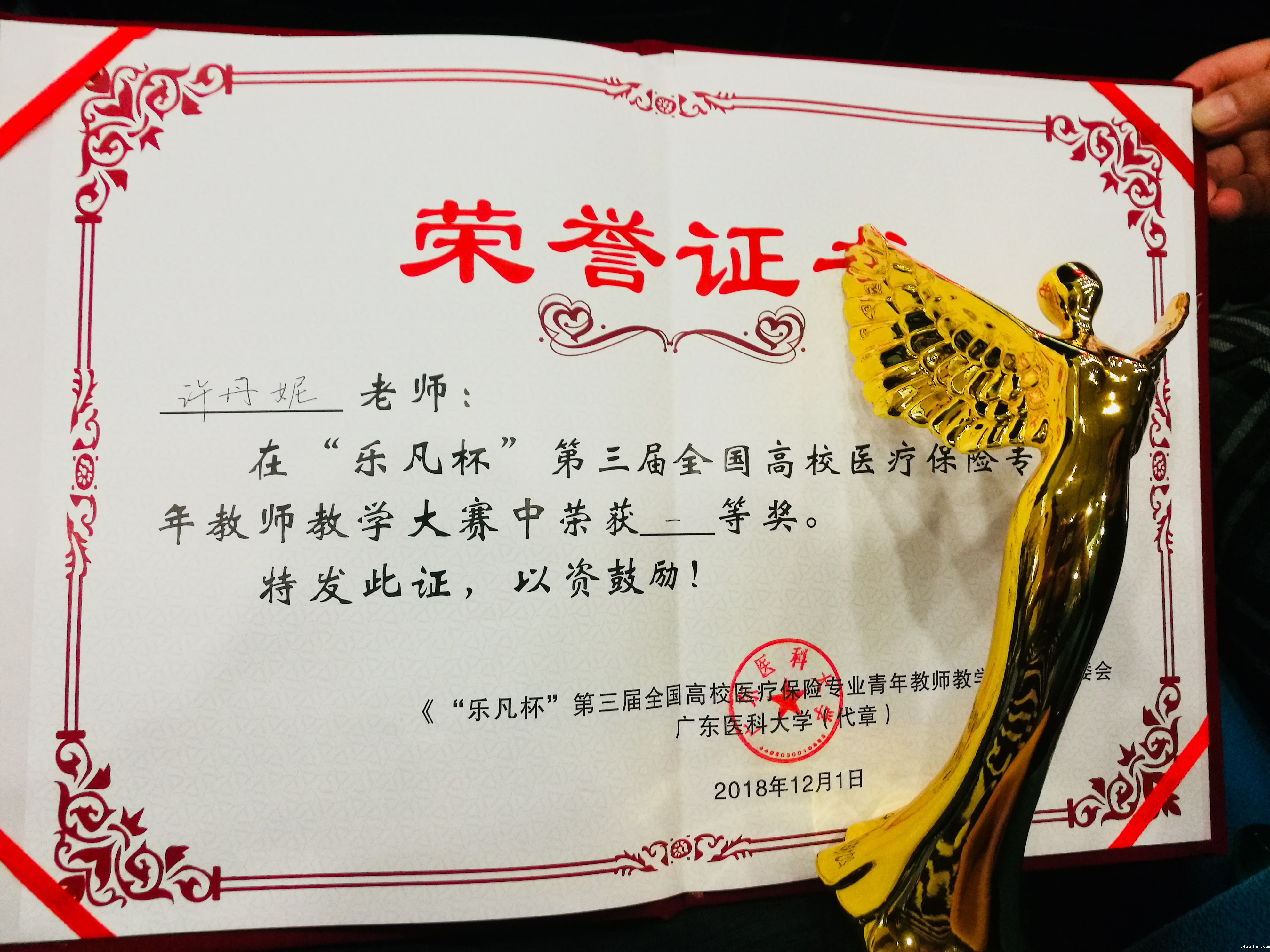 11月30日,第三届中国医疗保险教育论坛在广东医科大学举行,我院劳动与社会保障系教师许丹妮参加第三届全国高校医疗保险专业青年教师教学大赛,并荣获一等奖。