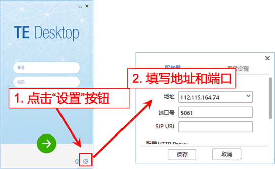 首次登录需要设置服务器地址及端口,点击右下角设置,填上新利全站APP的最新版本更新方法大视频会议服务器地址112.115.164.74,端口5061,点击保存。之后登陆第一次设置的数据会保存在软件之中不用再次设置。