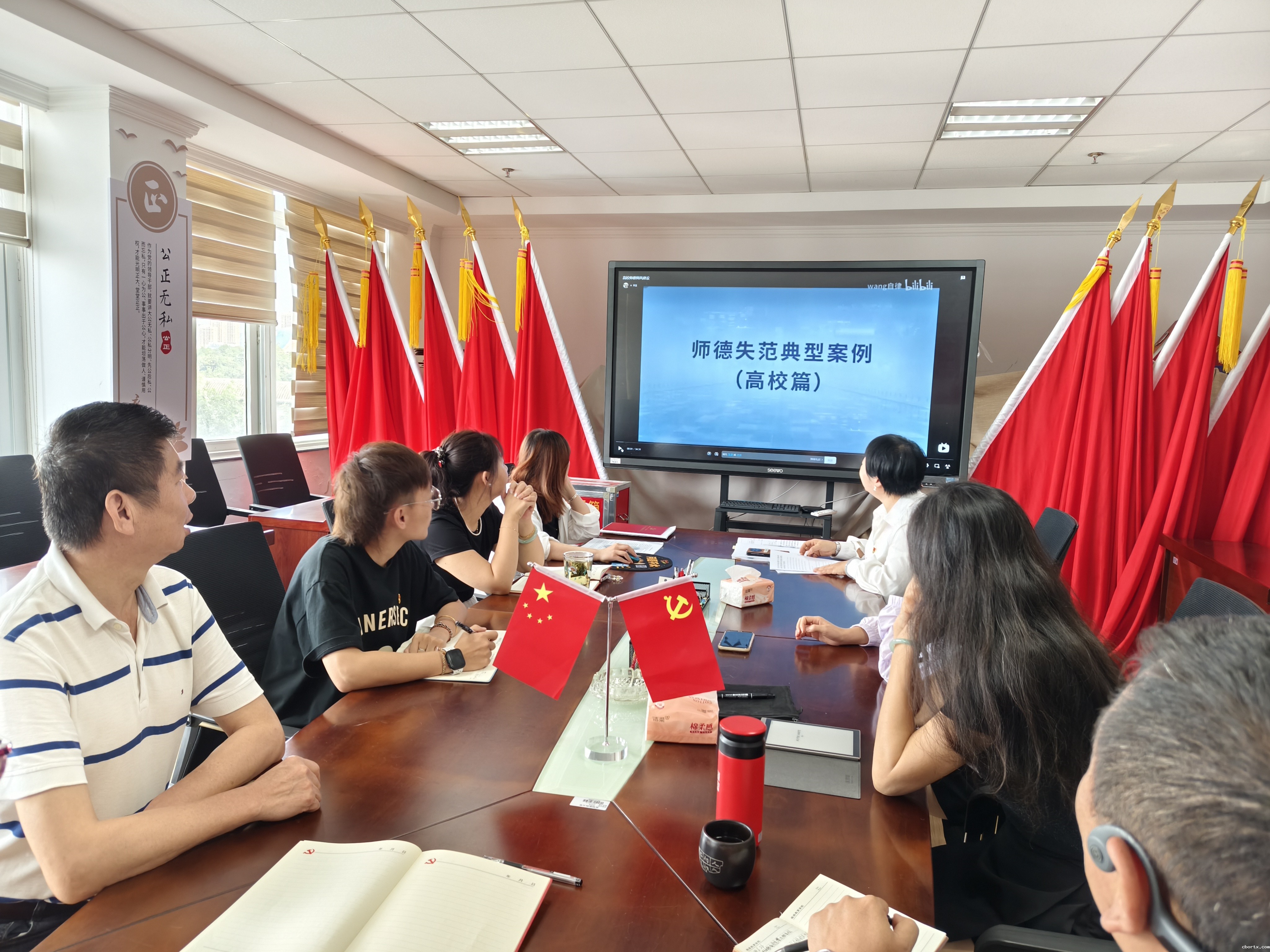 根据《云南省教育厅关于开展2024年“师德教育月”活动的通知》文件精神,为全面加强新时代教师队伍建设,大力弘扬教育家精神,营造尊师重教的良好氛围,2024年9月10日上午,教工第一党支部在平政校区知行楼703会议室开展“师德师风警示教育”主题党日学习活动。