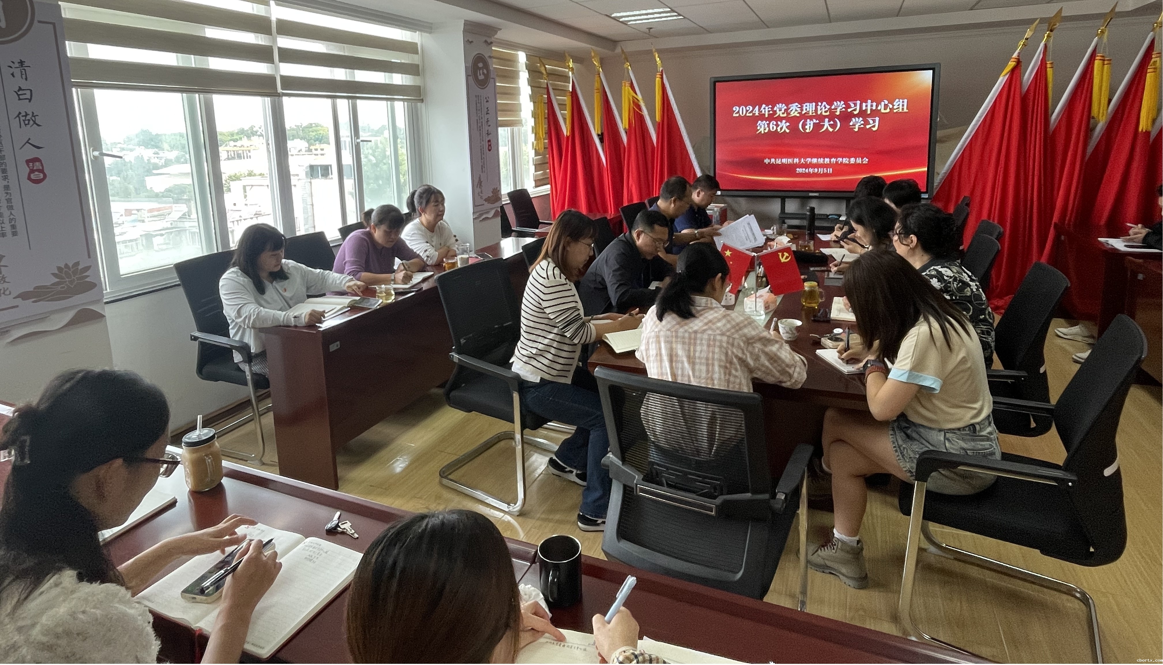 9月5日上午,学院召开党委理论学习中心组第六次(扩大)学习会议,传达学习贯彻党的二十届三中全会精神,研究学院学习宣传贯彻工作具体举措。会议由学院党委书记王念民主持,全体党员同志参加。
