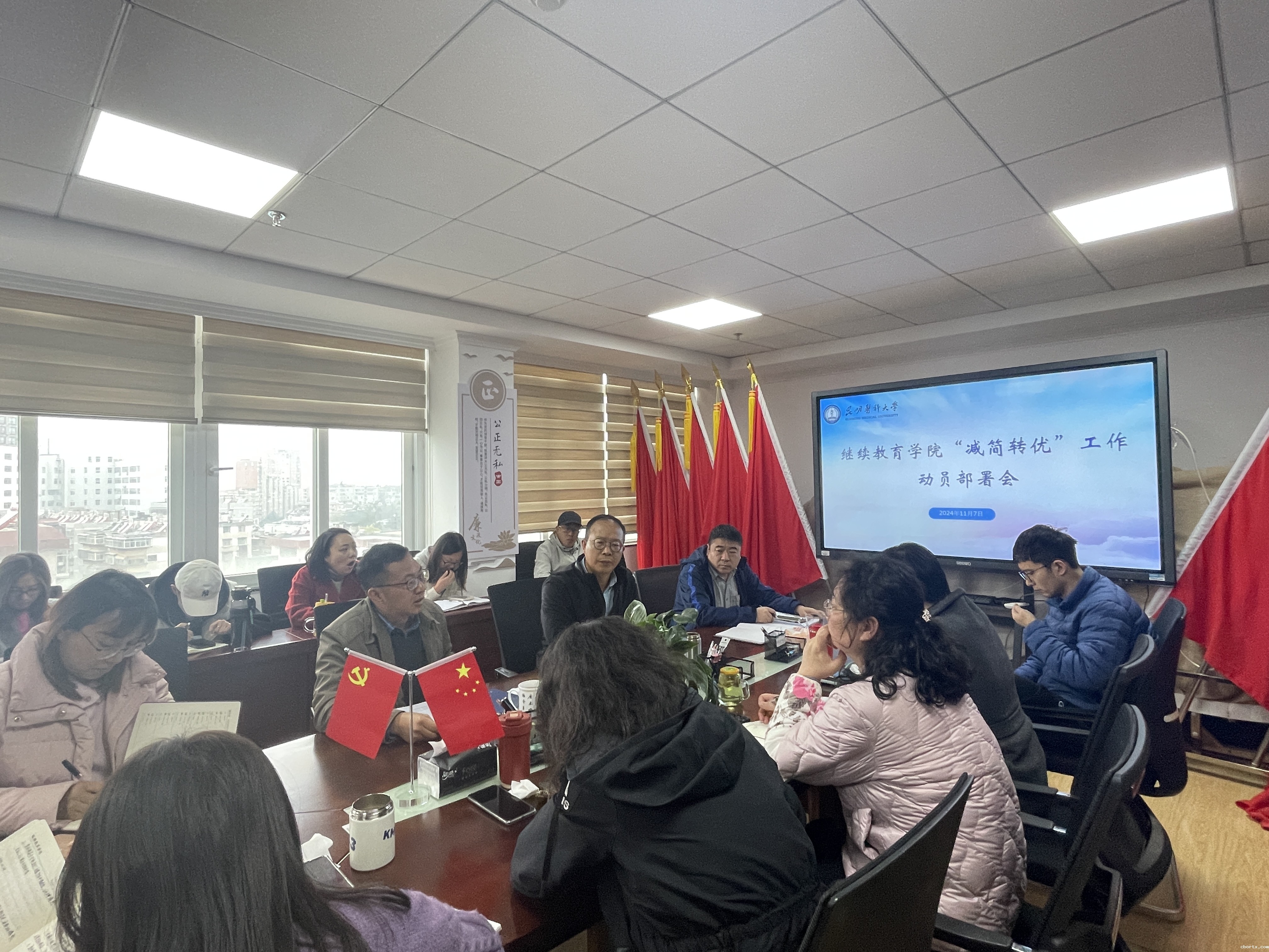 11月7日下午,继续教育学院召开“减简转优”工作动员部署会,学院全体教职工参加会议,会议由宋流东院长主持。