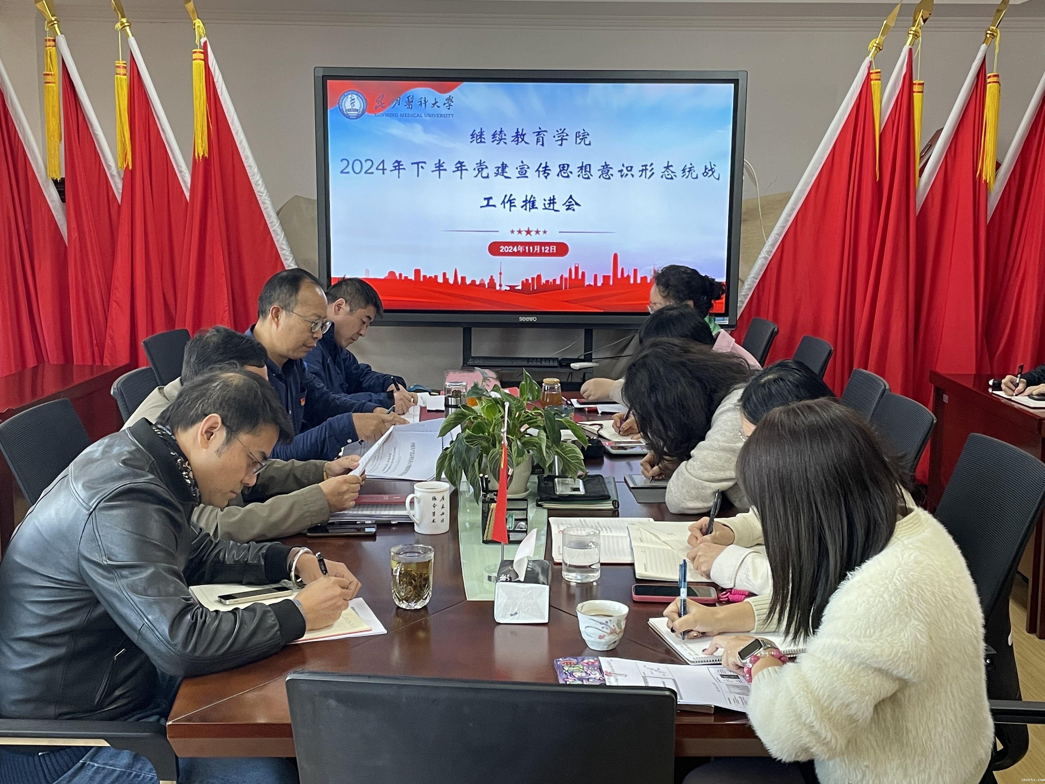 为深入贯彻落实习近平总书记关于党的建设的重要思想,学习贯彻党的二十届三中全会精神,进一步夯实基层组织建设,11月12日上午,继续教育学院在平政校区召开2024年下半年党建宣传思想意识形态统战工作推进会。学院党政领导班子成员、副科以上干部、支部委员、民主党派人士、党外知识分子、重点岗位人员参加会议。