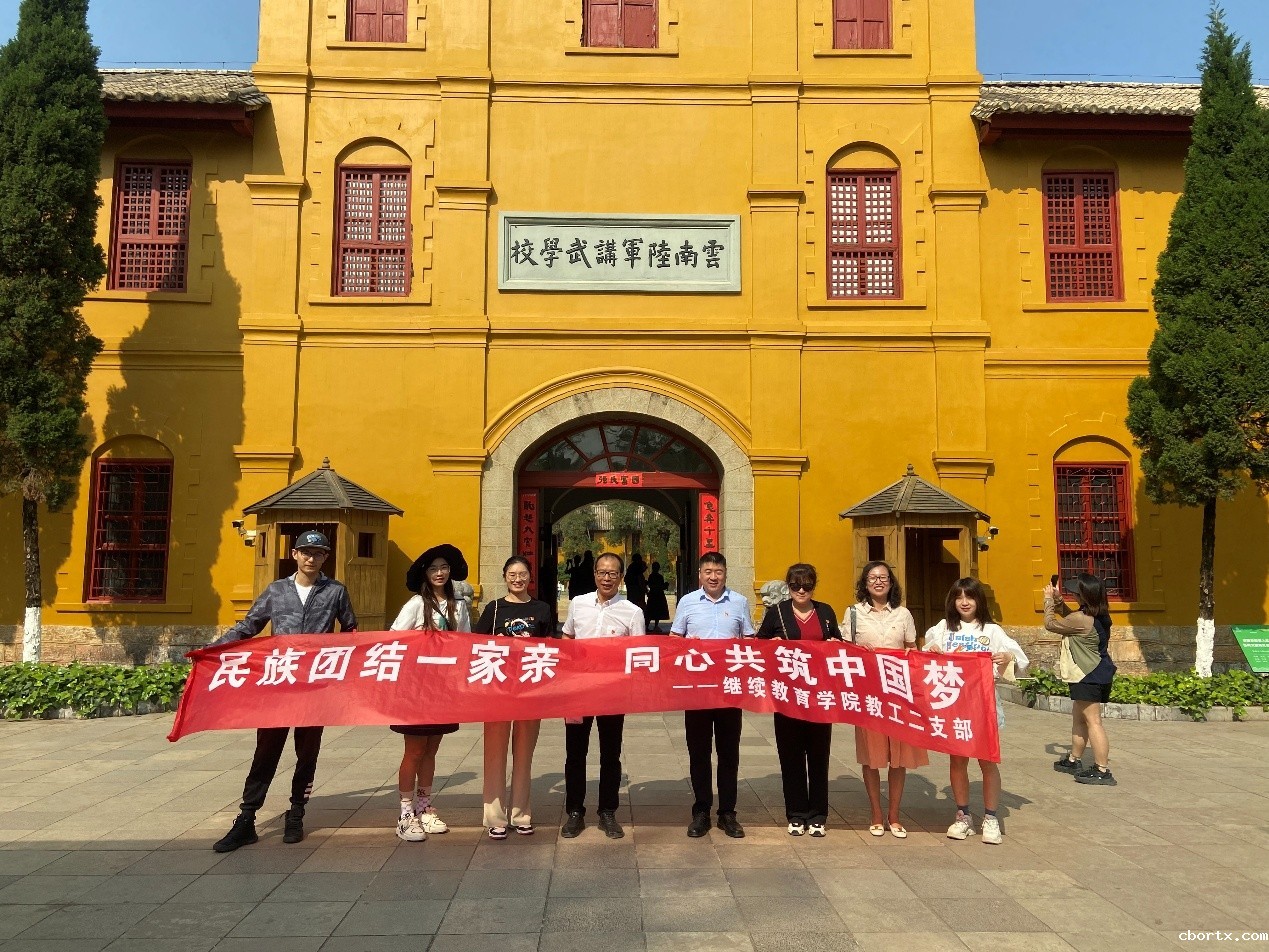 2023年4月19日上午,继续教育学院党委教工第二党支部全体党员到云南陆军讲武堂旧址参观学习,开展“民族团结一家亲,同心共筑中国梦”主题党日活动。
