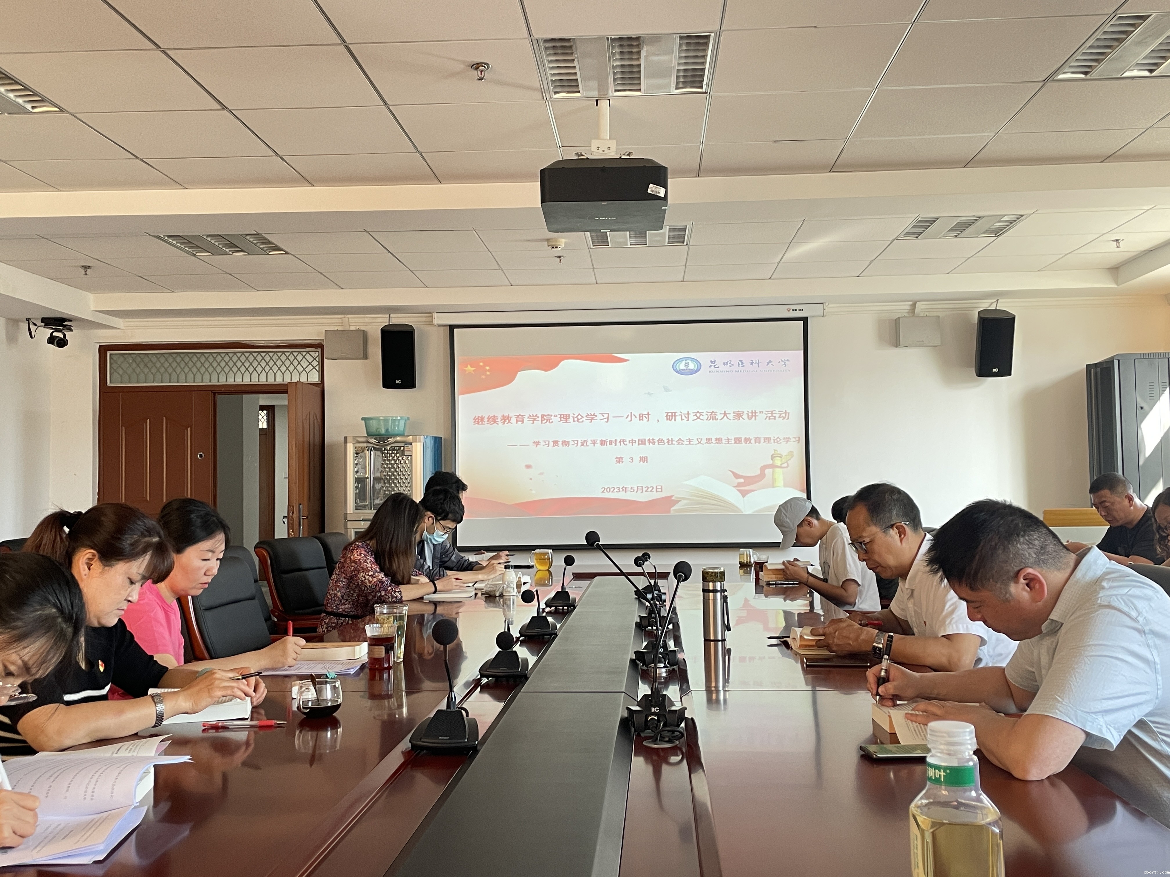 开展理论学习、接受思想洗礼是共产党人的必修课,是开展党内集中教育的题中之义。为扎实深入开展学院学习贯彻习近平新时代中国特色社会主义思想主题教育,强化党的创新理论武装,继续教育学院党委认真研究,精心部署,开展“理论学习一小时,研讨交流大家讲”活动,即每周一早上集中全体党员、干部自学一小时,每月最后一个星期五结合学习及工作实际集中研讨交流半天。采取集中自学、专题辅导、线上学习、集中研讨交流相结合等方式,认真研读主题教育确定的学习材料。广大党员干部、群众按学院党委要求,自觉准时参加理论学习、研讨交流活动,认真读原著、学原文、悟原理,更加深刻体悟真理的味道、思想的力量,并坚定笃行,以学促干推动实践,切实把学习成果转化为干事创业的实际本领。学院党委至今已开展了3期集中自学,学院党政领导充分发挥领导促学、示范带动作用,全体党员发挥党员的先锋模范作用,积极自学,深刻领会习近平新时代中国特色社会主义思想的真理光芒和实践伟力,深刻领悟“两个确立”的决定性意义,坚决自觉做到“两个维护”的决心意志。