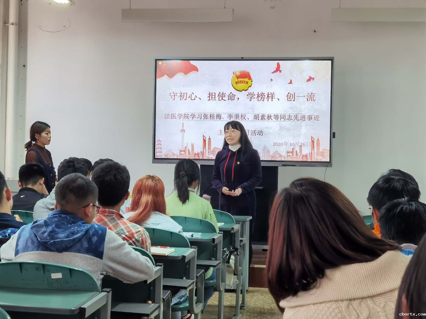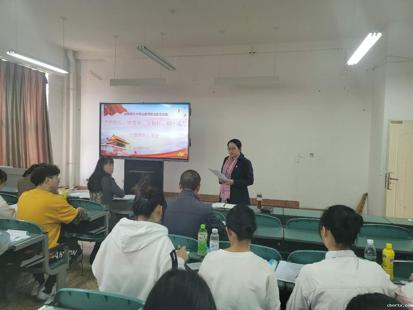 法医学院法医党支部于2020年10月29日在法医学院608教室召开“守初心、担使命、学榜样、创一流”主题党日活动和专题组织生活会,由法医党支部书记詹萌同志主持,支部全体党员参加。