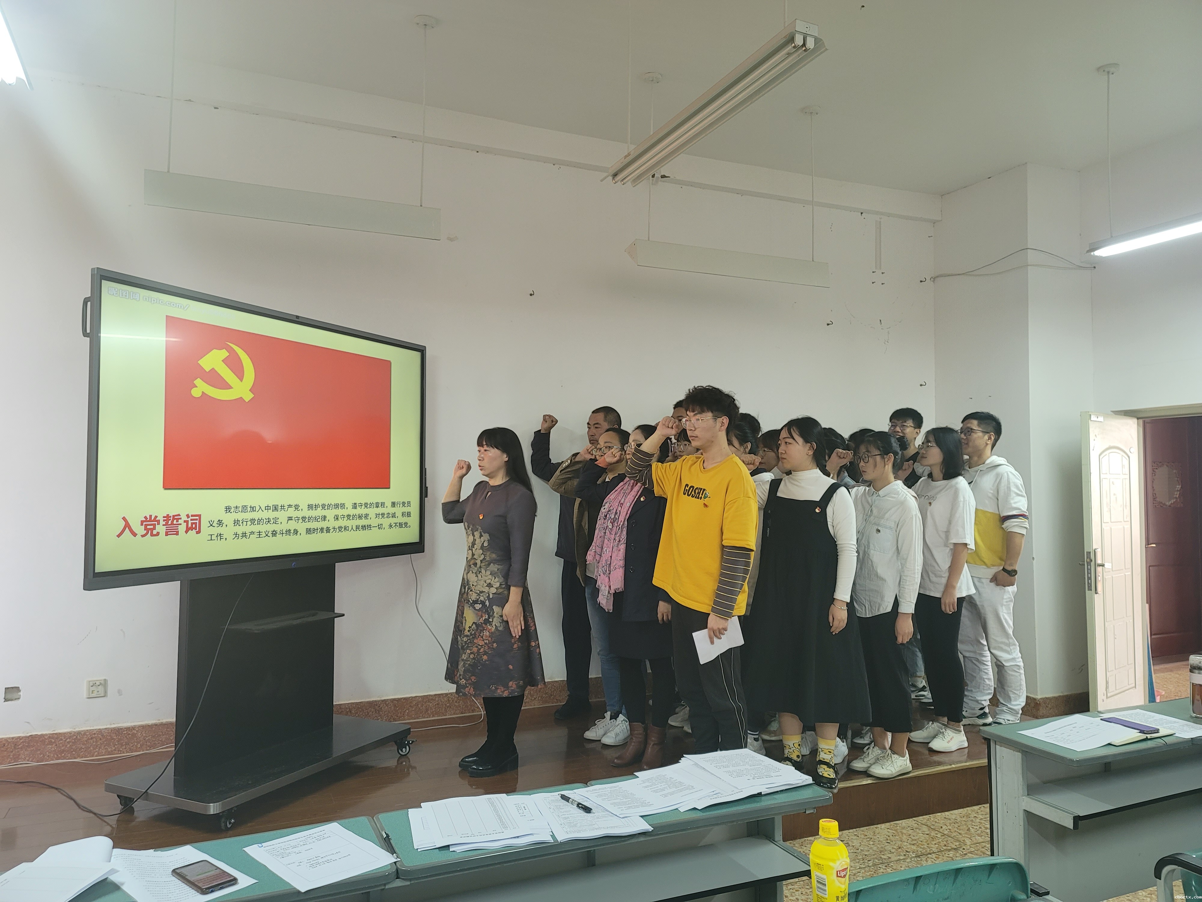 在主题党日活动中,詹萌同志以“学榜样、改学风、创一流”为题,为各位党员同志上了一堂生动的党课,并带领大家重温入党誓词。