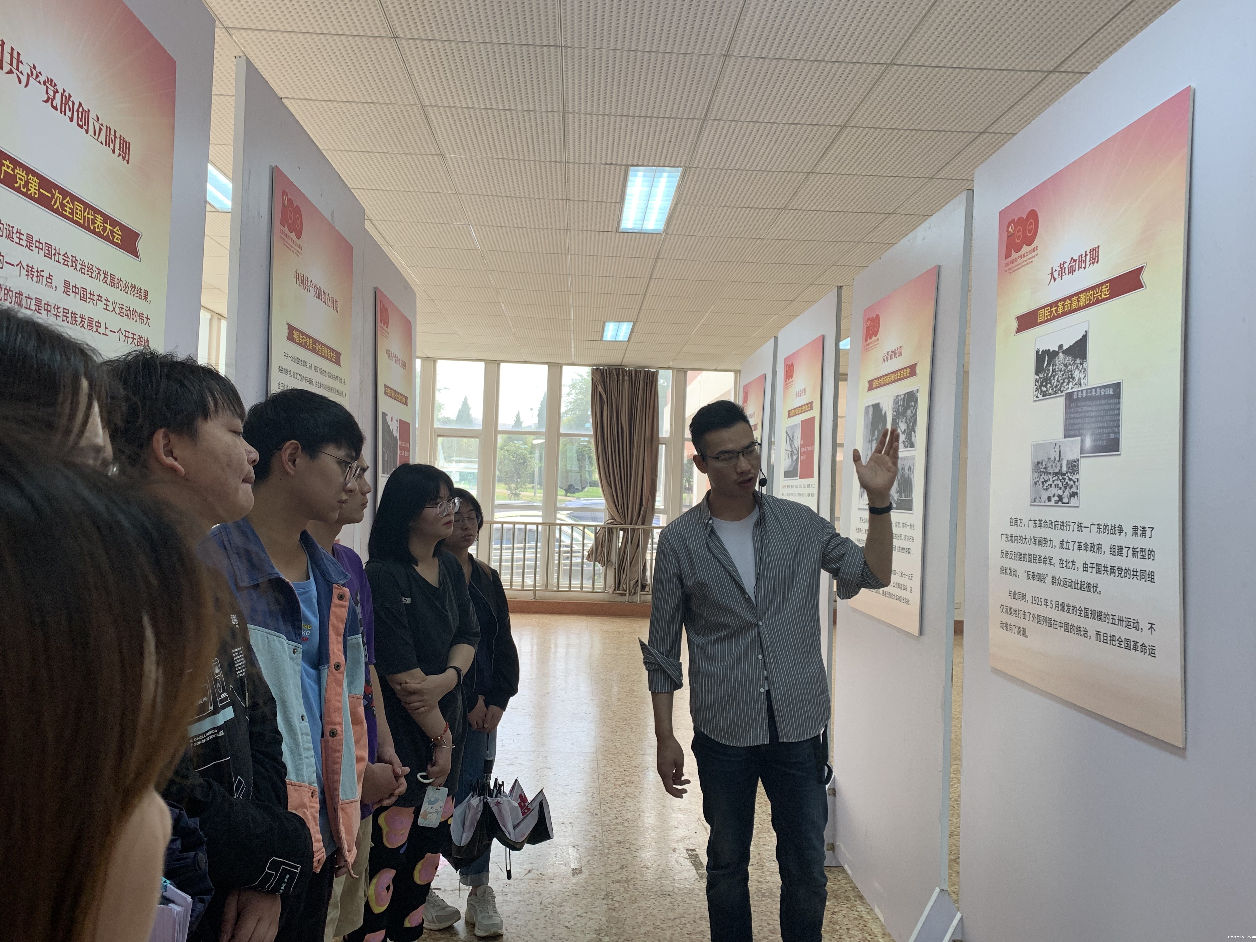 学史明理,学史增信,学史崇德,学史力行,党的艰苦奋斗历程是党和国家,乃至中华民族前进发展的基石和动力。2021年是中国共产党成立100周年,为广泛开展爱国主义宣传教育,铭记党的历史,讴歌党的光辉历程,发扬党的优良传统,深入贯彻落实习近平总书记关于“学党史、悟思想、办实事、开新局”重要指示精神,2021年5月10日11:00至12:00法学党支部在学校展览馆开展了参观“奋斗百年路 启航新征程”党史图片展览活动,由人文学院李南毅老师为同学们从新民主主义革命时期、社会主义革命和建设时期、改革开放和社会主义现代化建设新时期、中国特色社会主义新时代等方面进行深入系统的讲解,带领大家学习了历经百年中国共产党的辉煌成就和中国共产党人扎根群众、艰苦奋斗、不怕牺牲、勇于革新、与时俱进的创业史、无数的历史事实和斗争经验。