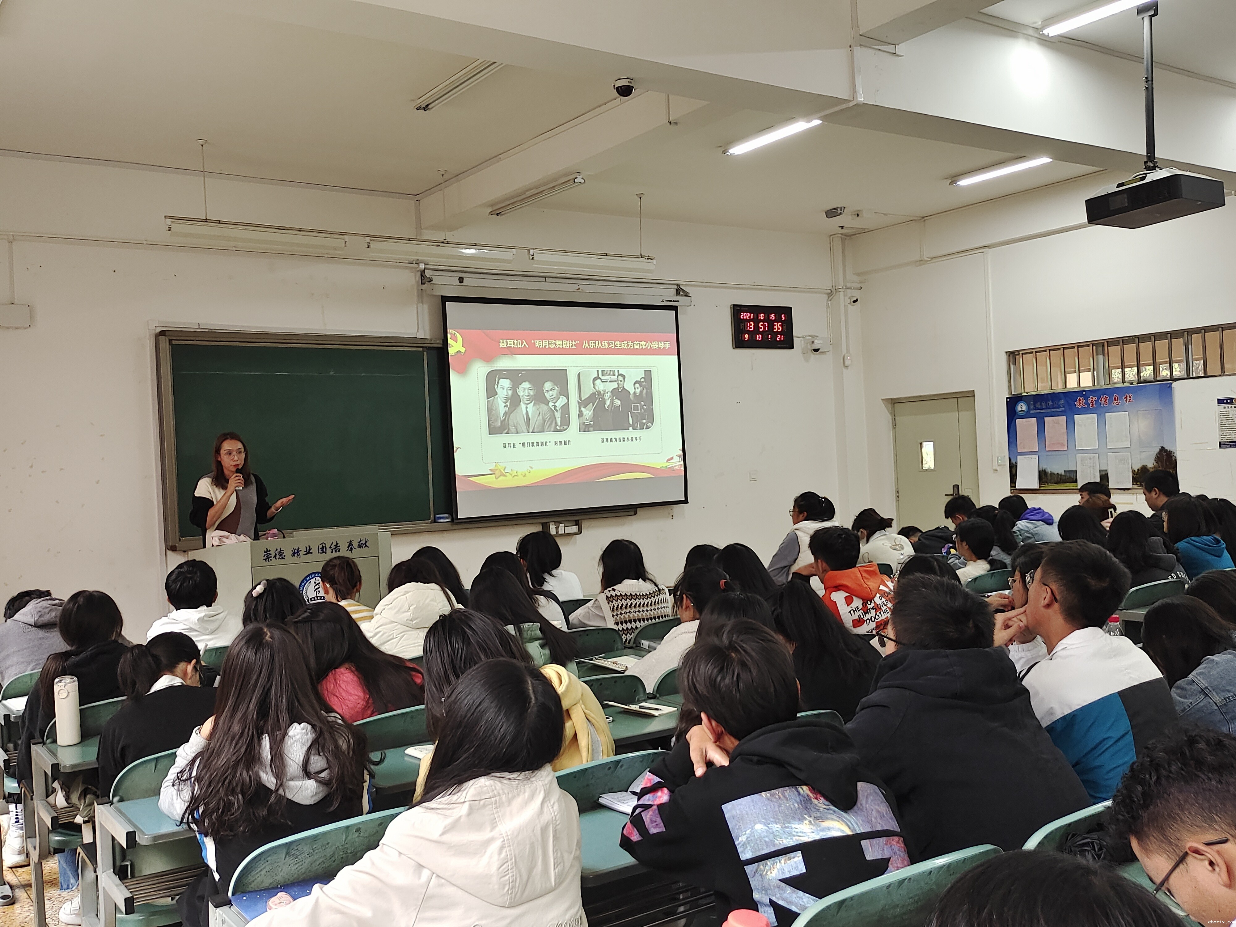 马华老师以时下深受青年喜爱的红色教育影视作品《觉醒年代》为讲述切入点,围绕“我们为什么要读书、我们应该读什么书、我们应该如何读好书”这一主线从青年如何在百年党史中领悟真理力量、培养爱国之情,如何坚定理想信念、激发强国之志,如何明确责任担当、砥砺报国之行三个方面教育引导同学们如何涵养大我情怀、活出青年人该有的模样。