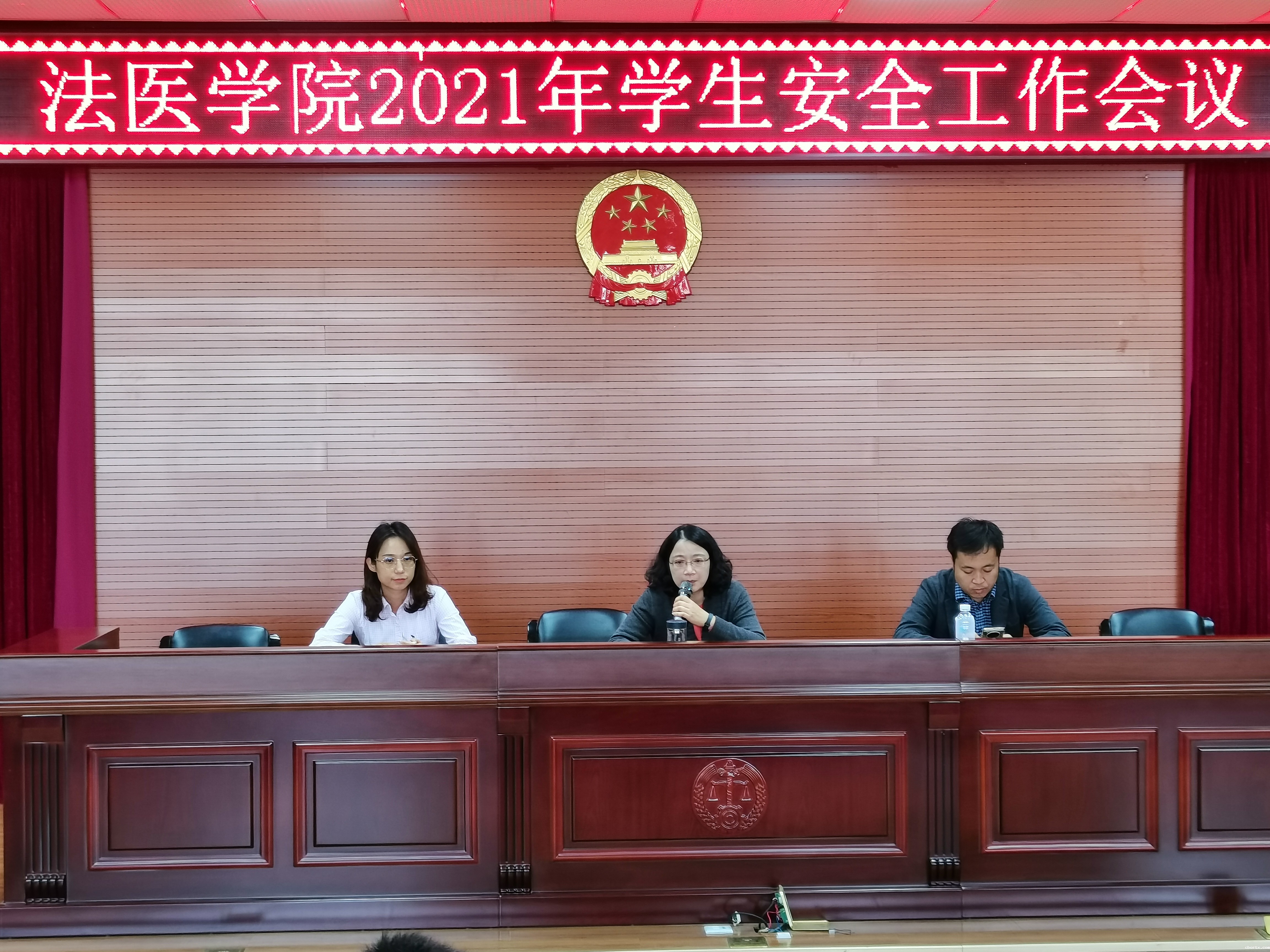 为进一步做好学院学生安全稳定工作,增强学生疫情防控常态化及安全风险防范意识,营造在学生日常教育管理过程中及节假日期间人人、事事、时时、处处讲安全、重安全的氛围,法医学院于2021年4月30日上午召开学生安全维稳专题会议,出席会议的有法医学院党委书记唐敏、全体辅导员班主任及各班级学生干部,会议由学院党委副书记马华主持。