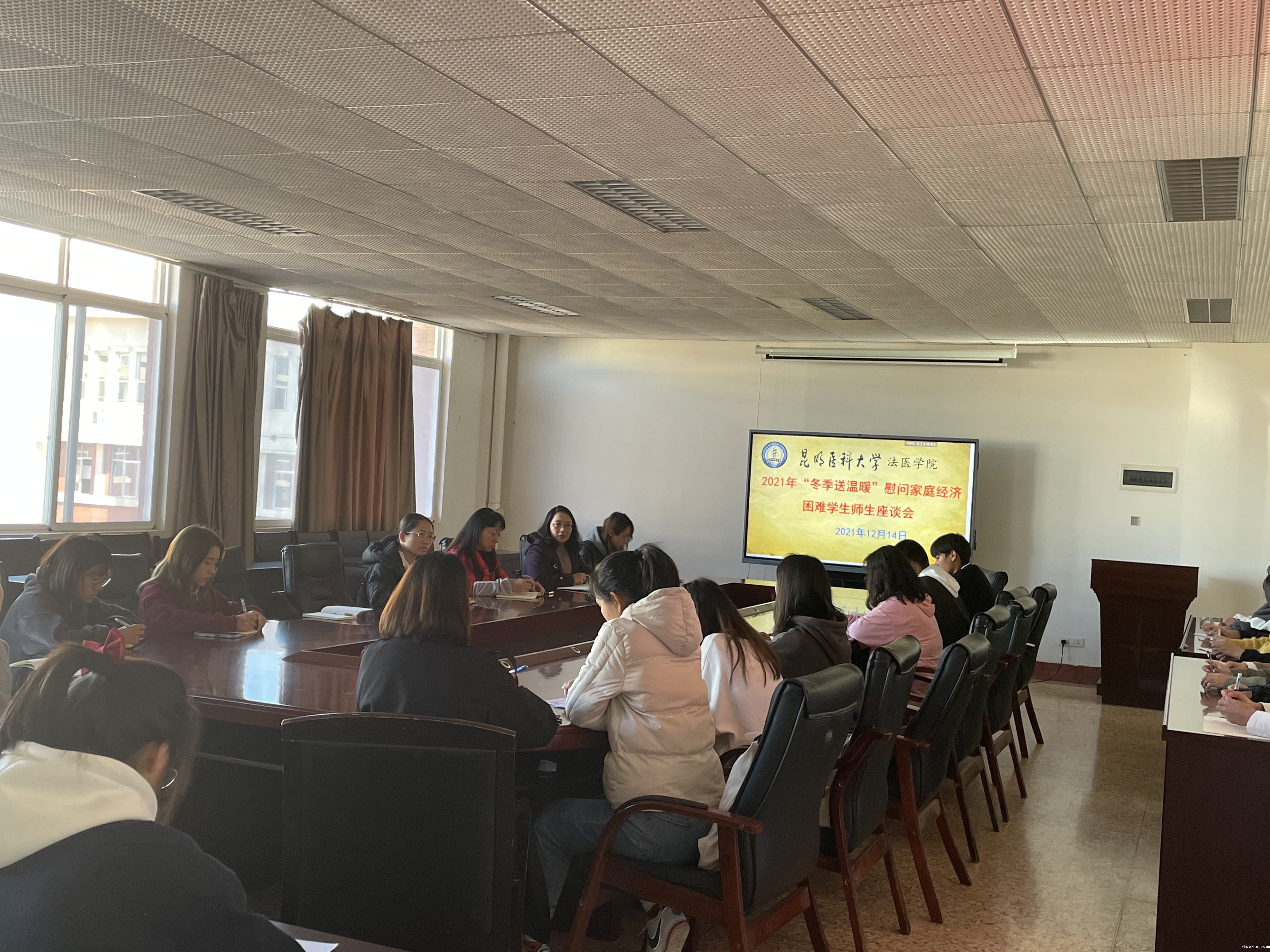 12月14日,学院召开慰问家庭经济困难学生师生座谈会,法医学院党委书记唐敏、辅导员、班主任、学院宣传资助大使及家庭经济困难学生代表共40余人参加了会议。座谈会上,唐书记首先表达了学院党委在岁末年初对家庭经济困难学生的关怀与问候,鼓励同学们在大学期间要刻苦学习不断充实自己,同时要心怀感恩之情,用实际行动将自身小我融入到报效祖国及学校改革建设发展的大我之中。随后与会师生就同学们获得资助后的励志成长经历以及自身学习生活方面存在的困难等方面展开了座谈交流。会议同时还对学院资助宣传大使进行了表彰及下一年度聘书的发放,并对寒假期间组织资助宣传大使到家乡开展实地走访传递温暖及资助政策宣传工作进行了部署。